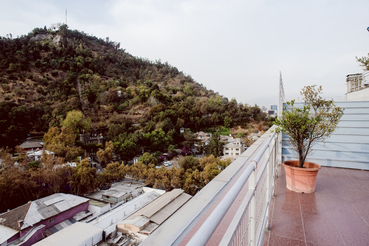 2층에 위치한 60 ㎡ 면적의 이 숙소는 2층 높이, 식사 공간, 간이 주방, 침실, 워킹 옷장, 서비스, 완비된 시설을 갖추고 있습니다. 3명이 머물 수 있는 매우 편안한 공간입니다. 더블 더블 침대, 1층 (거실) 의 푸톤 더블 침대, 12세 미만의 어린이에게 적합하지 않은 계단이 있습니다. 이 건물은 아방가르드 칠레 건축가의 작품으로 24시간 보안, 감시 카메라, 세탁, 방문객을 위한 주차장, 수영장, 헬스장, 바베큐 공간, 이벤트 공간, 와이파이를 포함한 파노라마 전망을 즐길 수 있는 테라스 (9층) 를 갖추고 있습니다. 게스트가 편하다고 생각하면 게스트와 공유하는 것을 좋아해요. 벨라비스타 지역은 세 개의 대형 공원으로 둘러싸여 있으며 도시의 역사적인 중심지에서 가깝습니다. 레스토랑, 바, 극장, 댄스 클럽, 관광 정보 포인트, 자전거 대여소 등 보헤미안 생활이 강렬하고 즐거운 보헤미안 분위기를 자아냅니다. 산티아고 중심의 모든 관광지는 도보나 자전거로 이동할 수 있습니다. 장거리 여행의 경우 400미터 거리에 있는 지하철이나 택시를 추천합니다. 전략적인 위치 때문에 벨라비스타의 동네는 산티아고 시의 역사적인 중심지와 가까워 숲 공원을 통해 걸어갈 수 있습니다. 로프트 내부에는 현지 예술가들의 수공예품 전시회가 열립니다.