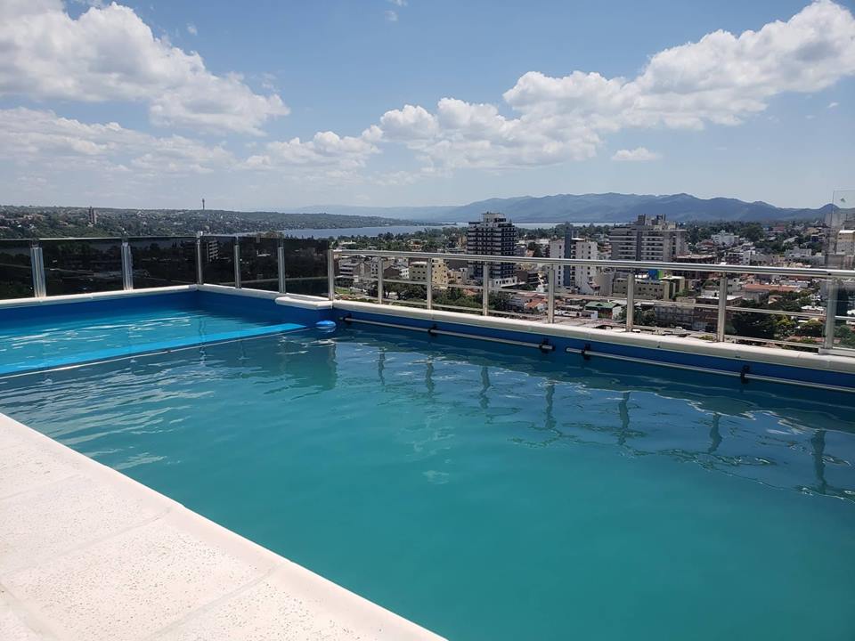 Departamento ideal para disfrutar en pareja con piscina y asadores en terraza con vista a la montaña. Ubicación privilegiada a 40m de la terminal de ómnibus, 200m de la costanera y 400m de la peatonal (Centro Comercial y Teatros). Apto para una pareja con un niño hasta 12 años. Dispone de 2 AA y 2 TV Smart y calefacción central. Cocina equipada con microondas, heladera con freezer, y batería completa de vajilla. Se brinda ropa blanca (toallas y sábanas); disponible frazadas y acolchados.