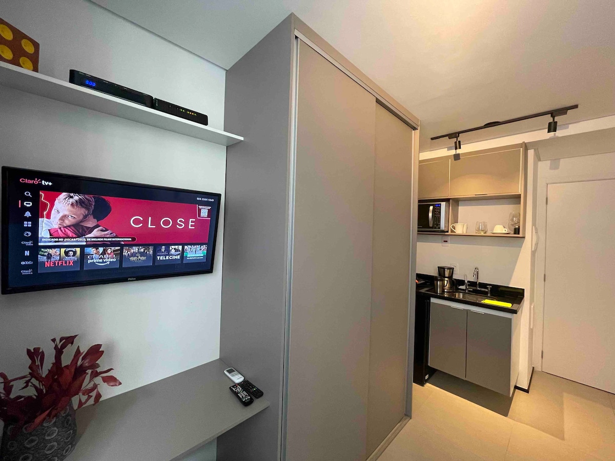 파울리스타 거리에서 한 블록 떨어진 곳에 위치한 편안하고 실용적인 숙소. 저희 아파트는 편안한 숙박을 위해 필요한 모든 것을 제공하며 숙소의 아늑함과 호텔의 실용성을 결합합니다. 24m²의 공간은 미니멀한 디자인과 기능성을 결합합니다. 빠른 인터넷, 고품질의 침구, 체크인 전 세심한 청소 및 주차 공간을 제공합니다. 집처럼 편안하게 느끼실 수 있도록 모든 것을 제공합니다.