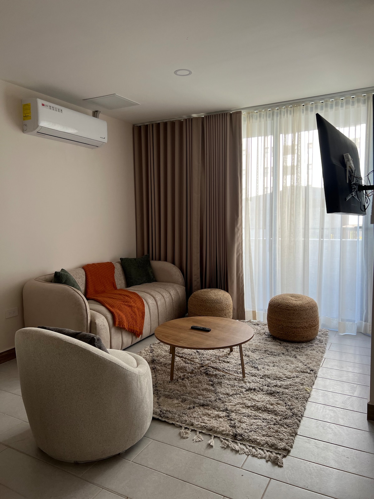 시프레세스 데 산 이그나시오에 전략적으로 위치한 아파트입니다. 멀티플라자, 카스카다스 몰, 정부 시민 센터에서 5분, 미국 대사관에서 7분 거리에 있는 안전하고 중심지이며 조용한 지역입니다. • 침실 2개 (메인 퀸사이즈 침대, 뷰티 레스트, 호텔 수준의 편안함) • 욕실 2개 거실, 시설이 완비된 주방과 세탁실, 사무실, 식사 공간이 있으며 건물에는 영화관, 헬스장, 놀이터, 개인 및 야외 사교 공간이 있습니다.