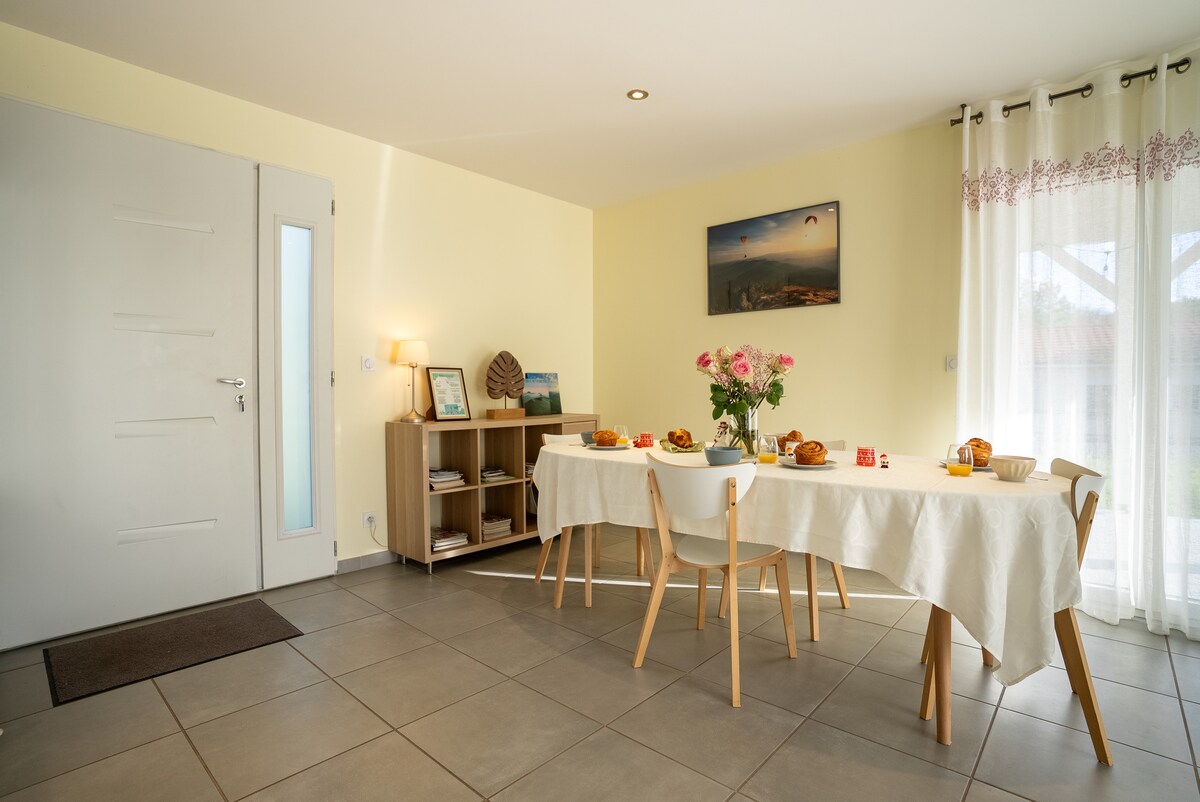 이 주택은 2015년에 지어진 것으로 개인 침실 3개를 갖추고 있습니다. 8채의 주택이 인접한 작은 마을에 위치하고 있습니다. 도착 시 침대가 준비되어 있습니다. 온수 해수 수영장, 쉘터, 지붕이 있는 테라스, 플랑카, 1200m2 정원, 놀이터. 정원 가구, 의자, 코쿤 의자. 구르 드 타젠: 10분 브라세리 NK: 5분 콤브론드와 샤틀 기욘은 자동차로 15분 거리에 있습니다(슈퍼마켓, 미용실, 약국, 정육점, 꽃집, 담배 가게, 우체국 등) 방문: 비시, 리옹, 샤텔 기욘