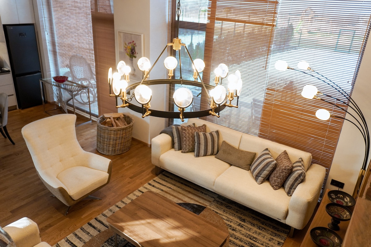 이 매력적인 타운하우스는 텔라비에서 차로 10분, 트빌리시에서 1.5시간 거리에 있는 평화로운 마을 나삼크랄리에 자리잡고 있습니다. 편안한 침실 2개, 시설이 완비된 주방, 벽난로가 있는 아늑한 거실을 제공합니다. 출장이나 레저에 적합한 이 숙소는 멋진 전망을 자랑하는 전용 업무 공간과 편안한 숙박을 위한 빠른 와이파이를 갖추고 있습니다. 다양한 와인 투어와 재미있는 액티비티를 준비하실 수 있도록 도와드립니다.
