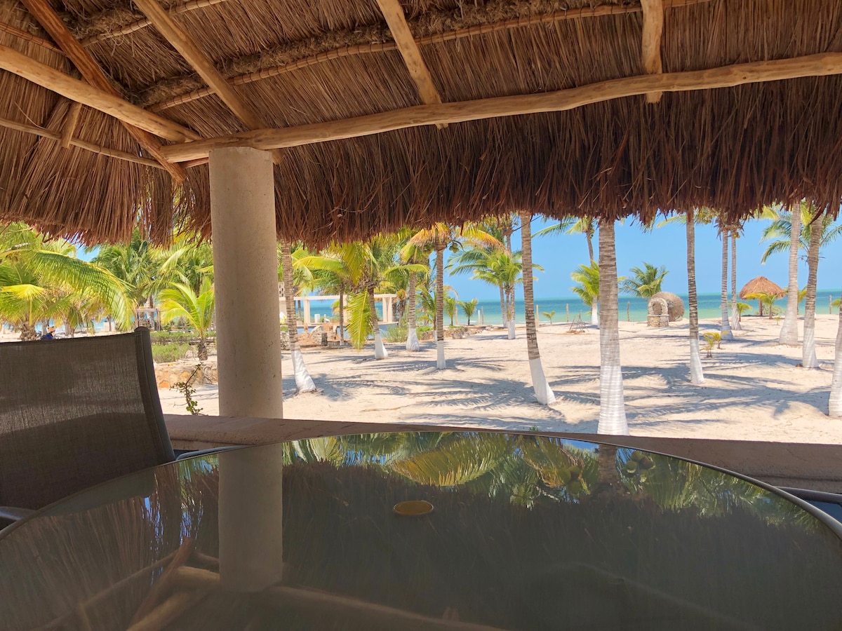 Villa Lujosa decorada vibra "Tulum" con acabados y muebles de lujo. Perfecta para unas vacaciones frente al mar Disfruta la terraza y una pequeña piscina para refrescarte saliendo del mar. Duerme la siesta en una hamaca con una espectacular vista desde la habitación principal y disfruta el sonido de la naturaleza. No cobramos energía eléctrica y tenemos generador de energía para emergencias, así que nunca te quedaras sin energía y sin aire acondicionado, que por cierto tenemos en todos lados :)