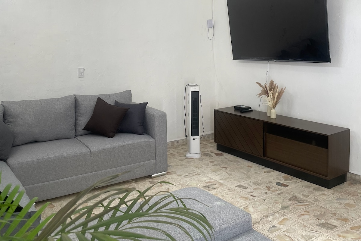 Instalaciones nuevas, el Apartamento cuenta con 2 habitaciones: 1 con cama matrimonial, la otra con 2 camas individuales, sala, comedor cocina equipada con estufa, refrigerador, tarja, horno de micro ondas, accesorios de cocina, internet, SKY TV, acceso a estacionamiento mediante porton electrico para tu seguridad y comodidad dentro de la propiedad, agua caliente las 24 horas. Excelente ubicacion a 8 minutos del centro en automovil. Contamos con facturacion