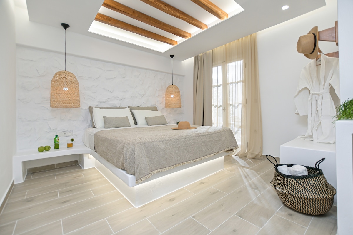 에게해의 멋진 전망을 감상할 수 있는 낙소스 타운에 자리 잡고 있으며, 게스트에게 독점적인 럭셔리 휴식 경험을 선사합니다. 섬의 유명한 포르타라와 베네치아 성에서 쉽게 갈 수 있습니다. 저희의 철학은 타의 추종을 불허하는 프라이버시와 함께 최고의 환대를 제공하는 것입니다. 숙소 그 이상으로 우리의 디럭스 스위트는 우아한 스타일과 독특한 그리스 환대와 결합된 최고의 편안함을 제공합니다. 따뜻하고 미니멀한 라인이 편안한 분위기를 연출합니다.