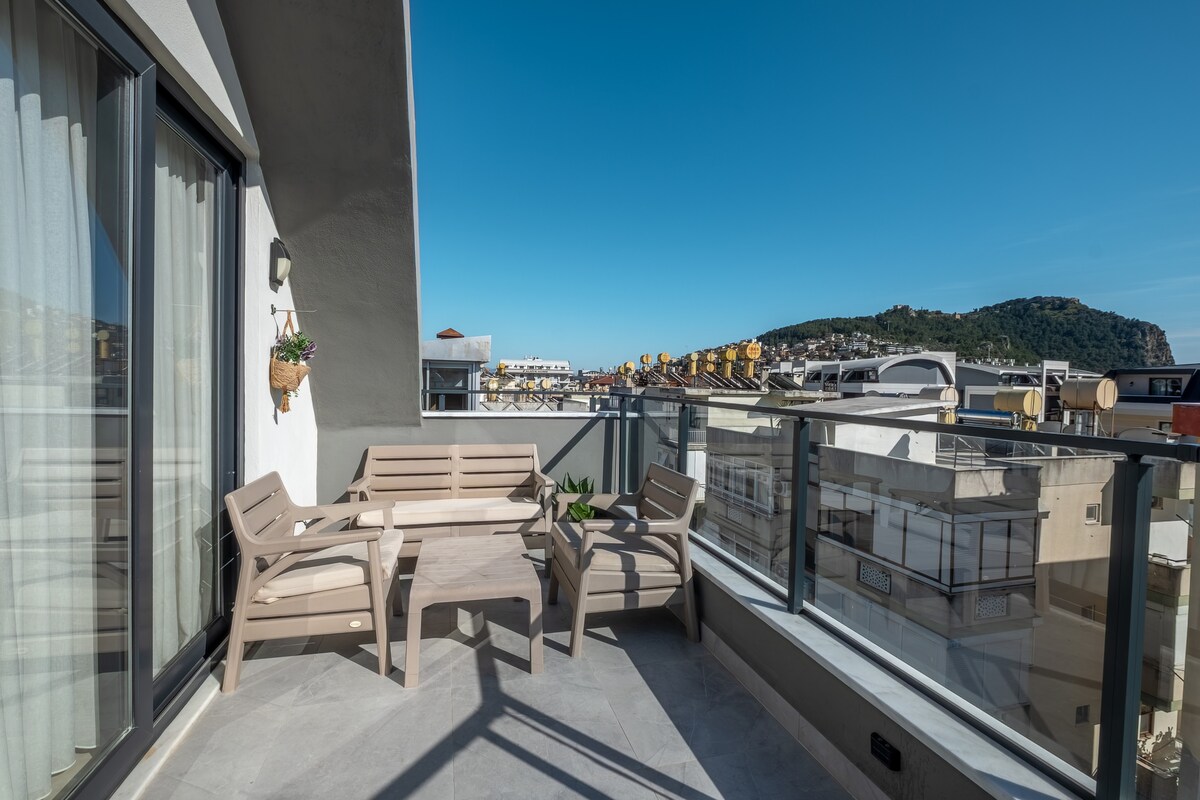 It is suitable for large families and groups of friends with accommodation for 8+2 people. The world-famous Cleopatra beach is 6 km away. In the garden of our villa, there are flowers and trees, a pool with a sea view and a barbecue.