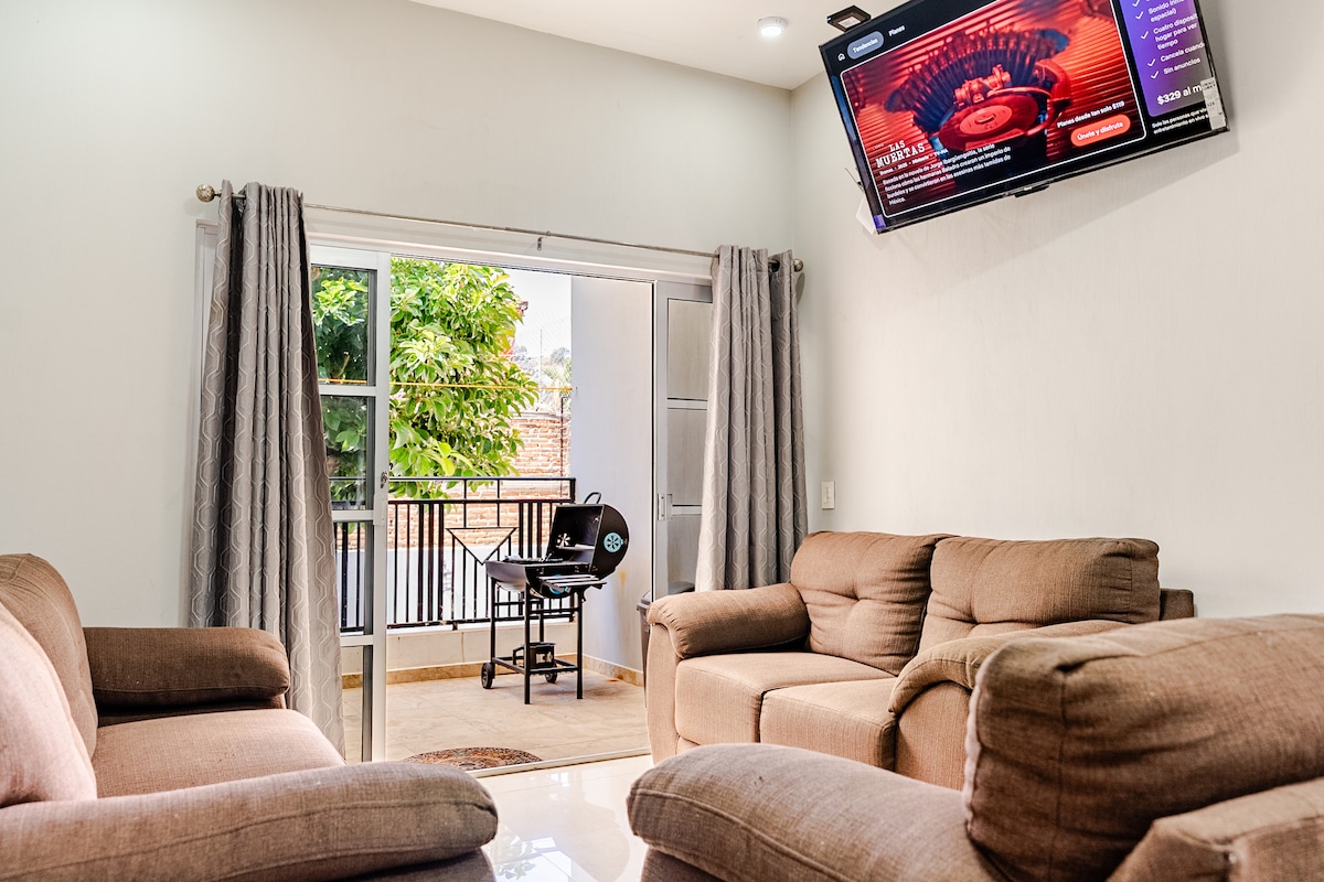 Charming apartment in the heart of Tequila, perfect for short and long stays, in which you will enjoy the aromas of the agave cooking from the surrounding factories, the nearby accesses to hire tourist activities, as well as gastronomy and entertainment areas, we have 1 parking space free of charge available in a complex 100 meters from where your accommodation will be. Come and enjoy this incredible lodging space with your family and/or friends.