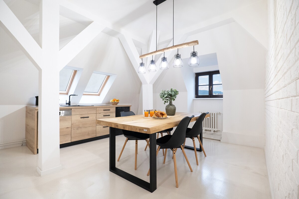 완전히 새로 리모델링한 아파트는 리토메르지체 (Litoměřice) 의 역사적인 중심지에 있는 14세기부터 고딕 양식의 주택을 보호한 역사적인 기념물에 있습니다. 아파트의 개성은 원래 금고와 디자인 인테리어로 강조되어 있습니다. 근처에는 레스토랑, 카페, 식료품점 (30m) 이 있습니다. 차량은 아파트 바로 옆 유료 주차장에 주차할 수 있으며, 버스 및 기차역 (500m) 에서 하루 10 CZK에 장기 숙박을 권장합니다.