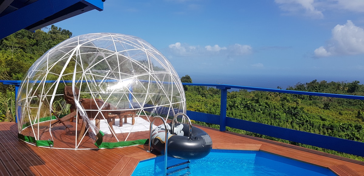 바다와 산 사이에 위치한 매력적이고 멋있게 꾸며진 방갈로로 자쿠지가 있는 아름다운 나무 테라스에서 생트와 마리 갈랑트의 멋진 전망을 즐길 수 있습니다. 바다의 풍경을 감상하고 바깥쪽으로 개방된 각 객실의 편안함을 즐길 수 있습니다. 카르벳 폭포까지 10분, 생트 섬으로 가는 페리 정류장까지 7분, 검은 모래 해변까지 3분, 수프리에르까지 25분 거리에 있어 위치가 완벽합니다. 가족, 친구들에게 이상적입니다...