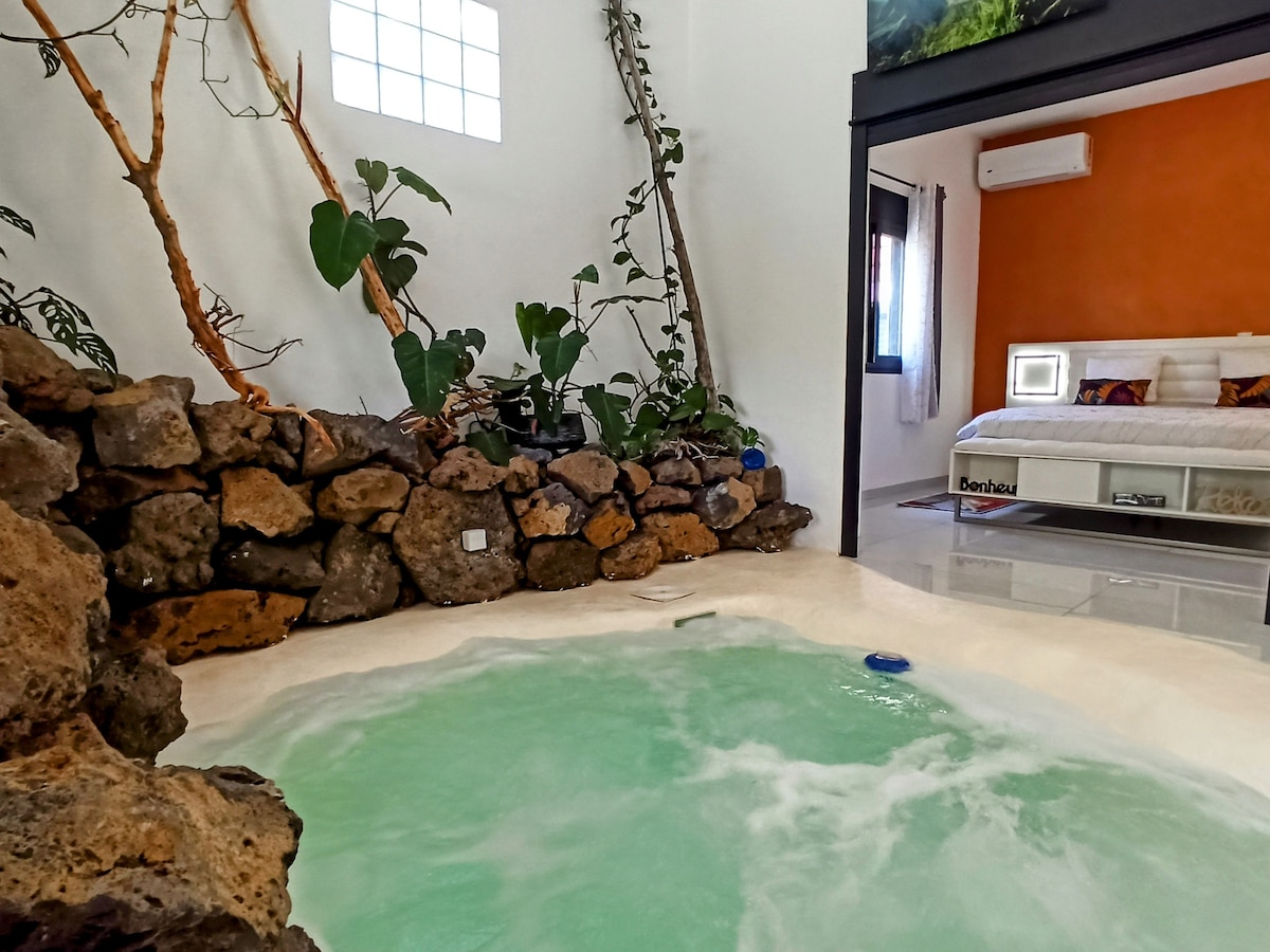 Magnifique studio au calme à mont vert les hauts à Saint-Pierre idéale pour 2 personnes Vous aurez à votre disposition une cuisine ouverte avec un coin séjours climatisée disposant d’un lit également une terrasse couverte avec jacuzzi privatif pour vos soirées détente Ce logement est préparé avec soin pour que vous vous sentiez comme chez vous. On vous serait très reconnaissants de le laisser aussi propre et accueillant qu’à votre arrivée. Cela permet à chacun de vivre une belle expérience ☺️