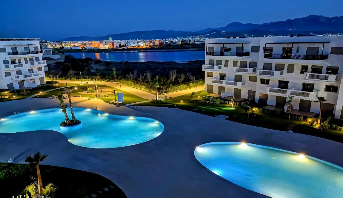 레지던스 "카보 우에르토"에 위치한 이 아파트는 편안하고 우아하며 24시간 보안 레지던스의 정원과 2개의 수영장 전망을 제공합니다. 초고속 와이파이(광섬유) 연결, 완비된 주방, 친절한 거실 공간을 갖춘 이 숙소는 모로코에서 가장 아름다운 해변 중 하나에서 차로 3분 이내 거리에 있으며, 카보 네그로에서 머무는 동안 많은 레스토랑, 상점, 오락 거리에서 몇 걸음 거리에 있습니다.