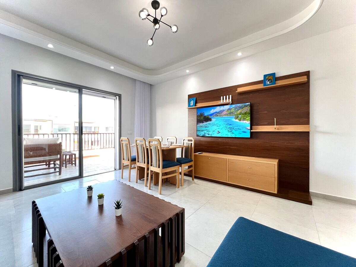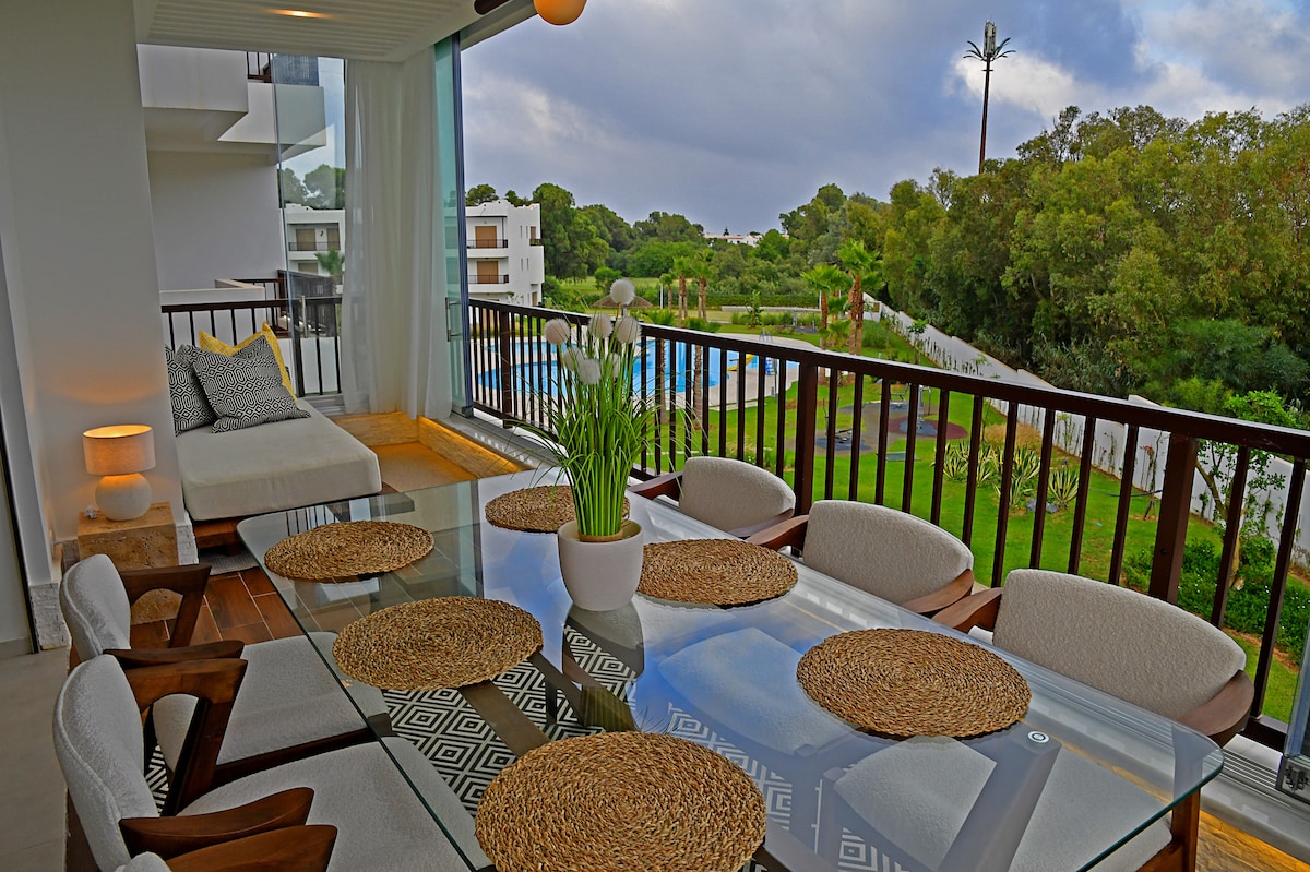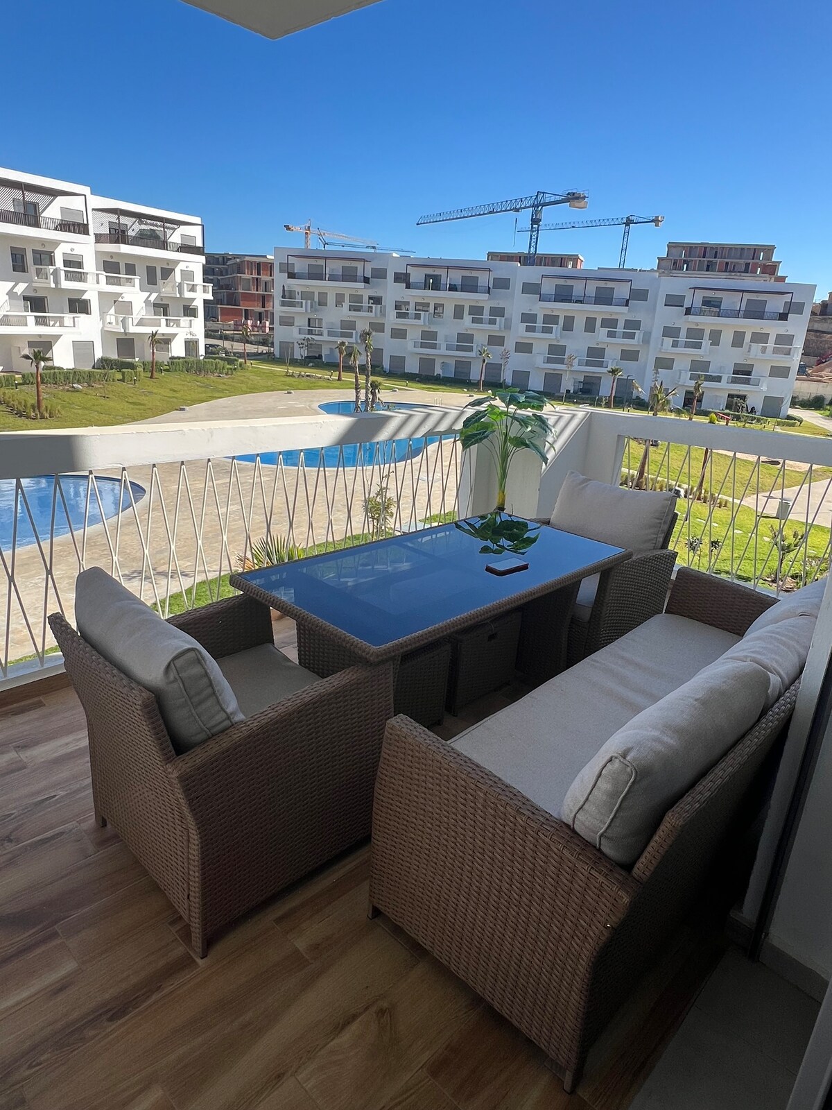 Joli appt neuf dans une résidence privée sécurisée avec 3 piscines, un espace jeux enfants, un parking gratuit sur place et à 5 min de la plage. L’appt est composé d'1 ch à coucher avec SdB, un salon, une salle à manger, une cuisine bien équipée, une salle d’eau et une grande terrasse bien aménagée. Proche de toutes commodités (Café, restaurant, pharmacie et supermarché), l'appartement est à 10 min de Martil et M'diq.