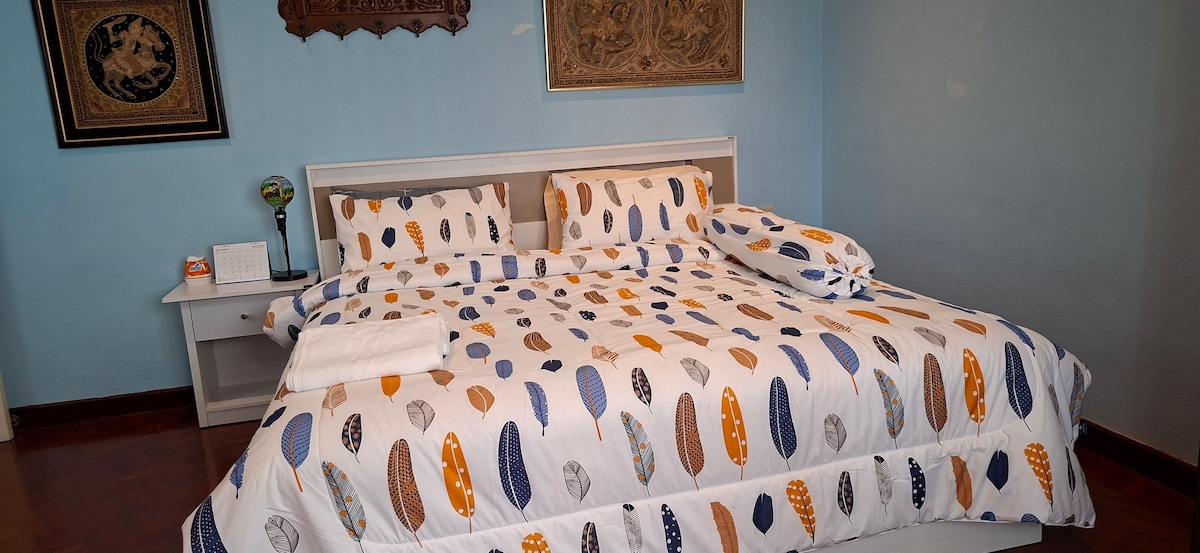 에어컨이 설치된 침실 3개와 욕실 3개가 있는 반목조 건물입니다. 주방, 바, 광섬유 와이파이, 넓은 개방형 공간이 위층에 마련되어 있습니다. 자녀를 둔 가족 또는 친구들에게 안성맞춤입니다. 치앙마이 게이트와 토요일 워킹 스트리트에서 도보로 10분 거리에 있습니다. 매일 아침 무료 홈메이드 조식을 제공하며 공항에서 무료 픽업 서비스를 제공합니다.