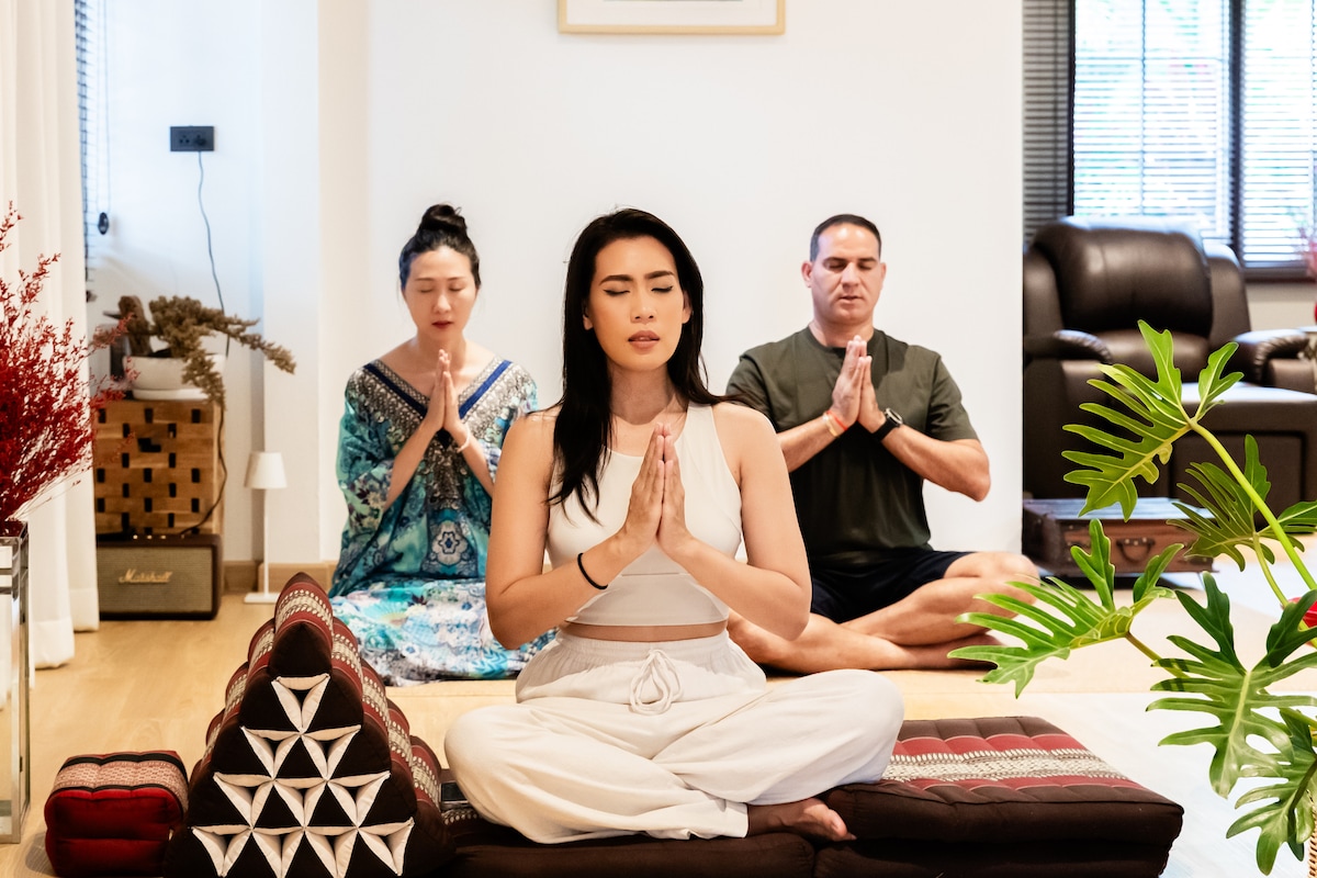 정원에서 만트라와 음악, 마음챙김 동작을 즐기고, 차 한 잔으로 마무리하세요.