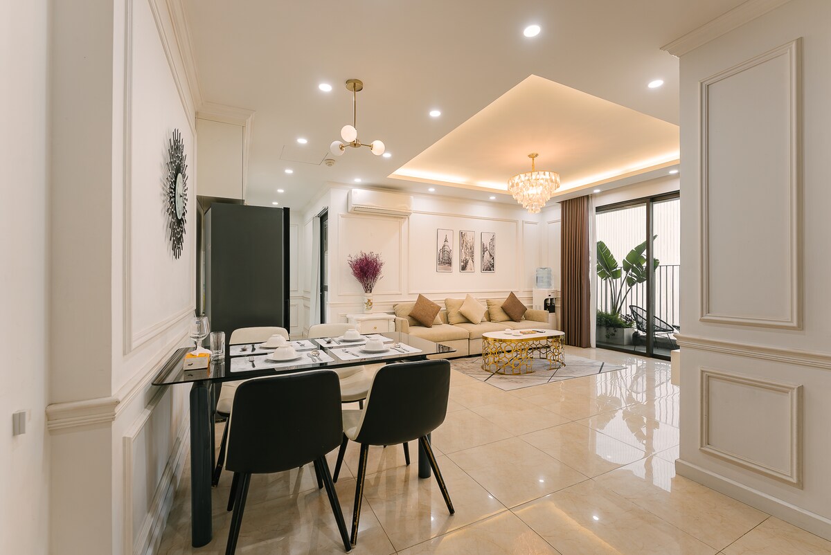 - This is a chain of modern apartments located in Hanoi's luxurious apartment complexes. Vinhomes D'Capitale one of the best place to live, each apartment is tastefully decorated, sparkling clean and has a great city view, lake view from the best floors. We offer perfect accommodation for couples, families or single travelers. - This brand new apartment has 3 queen-sized bed, 2 private bathroom, living-room with comfy sofa for you relaxing with a smart TV 60 inch.