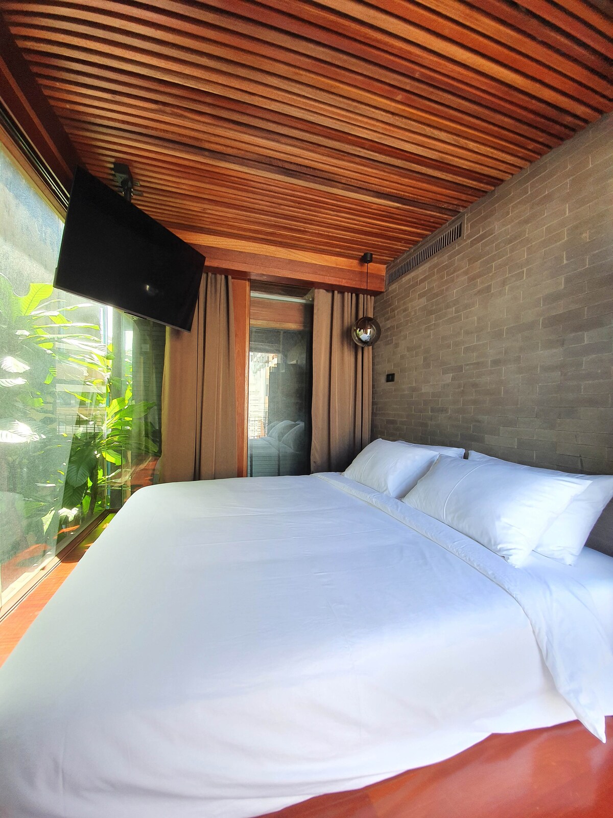 Staying in this modern design room with a big bathtub in Old Town Bangkok offers a luxurious retreat with a perfect balance of contemporary comfort and cultural richness. The combination of sleek design, high-end amenities, and a prime location makes it an ideal choice for travelers seeking both relaxation and an authentic experience of Bangkok's historic charm. Enjoy a stylish experience at this centrally-located place.