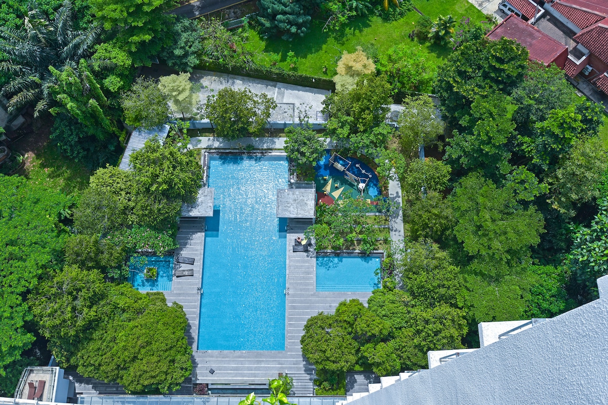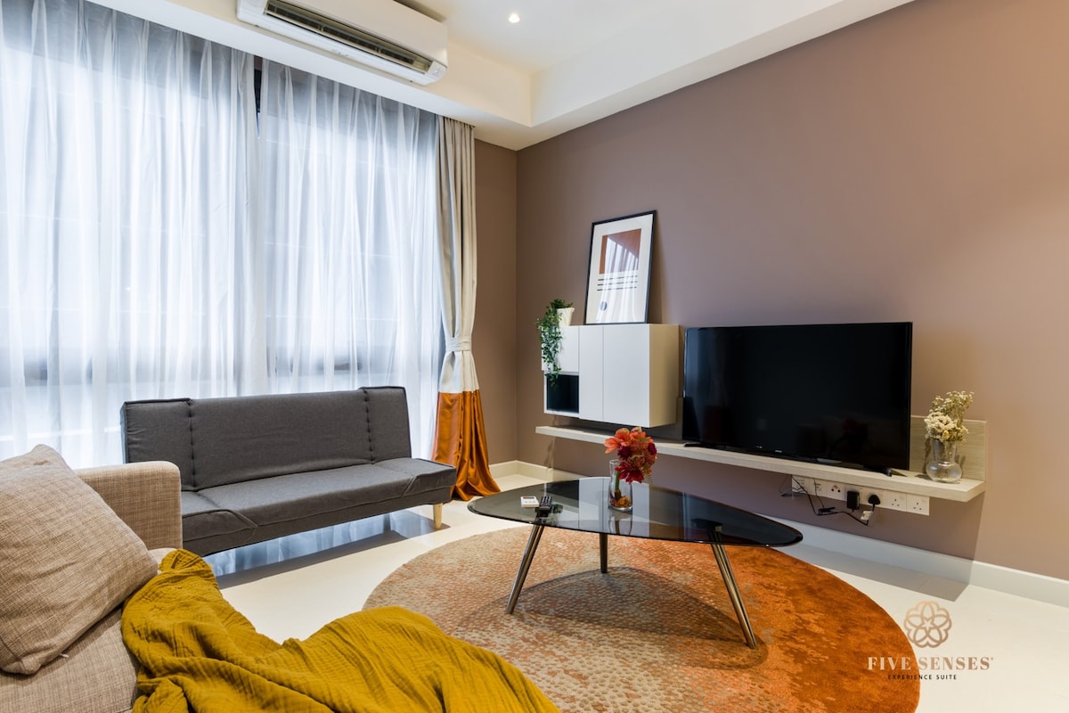 Welcome to '4 Star Five Senses Experience Suites' in KL ECO CITY, Bangsar, Kuala Lumpur—where luxury and nature come together. ✨ Direct link to Mid Valley & The Gardens Mall ✨ Short walk to LRT & KTM train stations ✨ Close to Bangsar Village & Bangsar South ✨ Surrounded by local food and nightlife Relax with Netflix, an infinity sky swimming pool, gym, free WiFi, and a family house with a sky garden. Experience the ultimate in comfort and convenience!