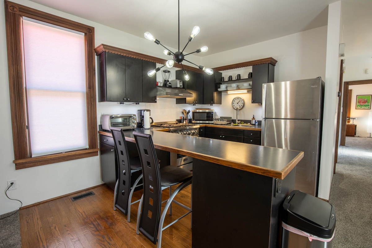 오하이오 주 데이턴 중심부에 위치한 유서 깊은 사우스 파크 지구에 있는 세련되고 현대적인 숙소를 확인해보세요. 이 트렌디한 동네에서 최고의 거리에 위치하여 현관에서 공원 전망을 즐길 수 있습니다. 1880년에 지어진 이 새롭게 개조된 숙소에는 개방형 콘셉트의 주방, 침실 2개, 욕실 2개가 있습니다. 숙소 전체에 나무 바닥과 12피트 높이의 천장이 있습니다. 시내, 마이애미 밸리 병원, 데이턴 대학교에서 가깝습니다. 쇼핑, 식당 등이 도보 거리 내에 있습니다.