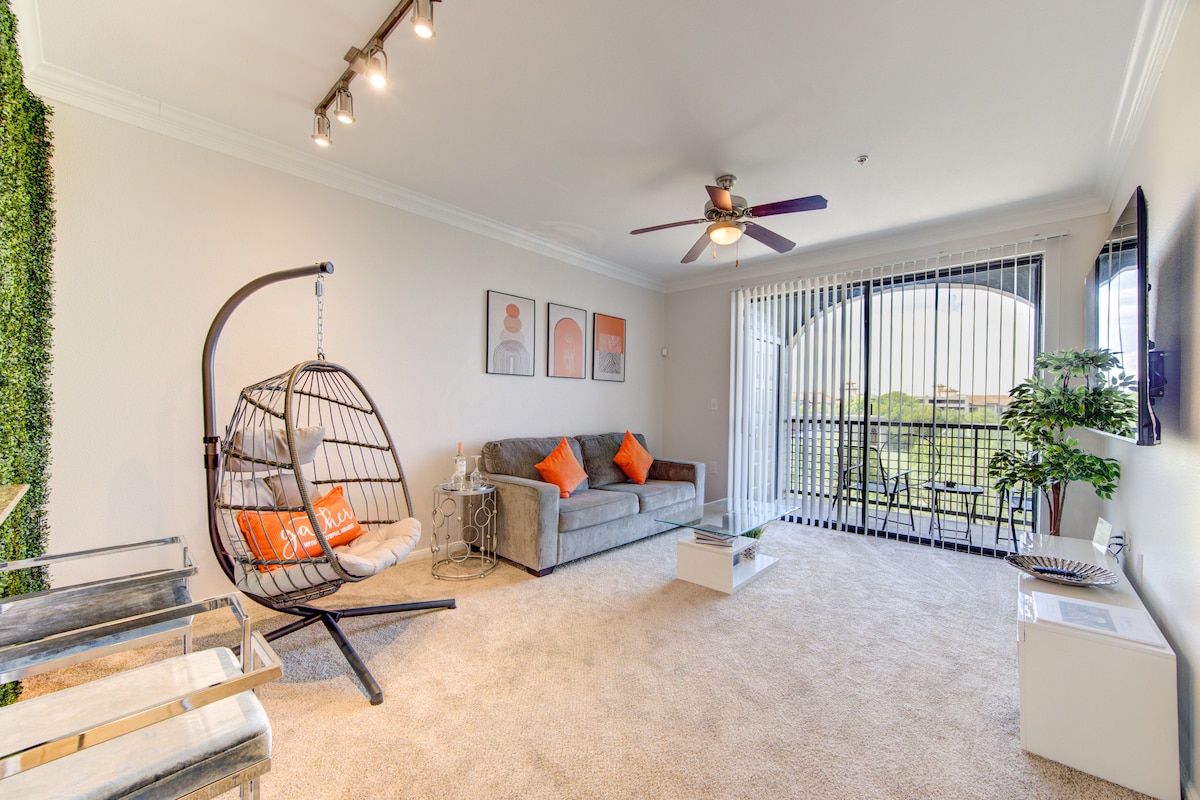 아름답게 디자인되고 가구가 완비된 1BD 1BA 럭셔리 아파트는 메디컬 센터에 위치하고 있으며, NRG 스타디움과 휴스턴 시내의 모든 액션에 가깝습니다. 무료 주차, 빠른 와이파이, 넷플릭스, 24시간 헬스장 이용, 세탁기와 건조기, 커피 스테이션 및 호텔과 같은 편의시설을 즐기세요. 이 멋진 숙소는 넓고 아늑하며 편안한 분위기를 자랑합니다. 활기찬 도시 휴스턴이나 긴 의사의 약속을 둘러본 후 긴 하루를 보낸 후 휴식을 취할 수 있는 완벽한 장소입니다. 내 집처럼 편안한 숙소에 오신 것을 환영합니다.