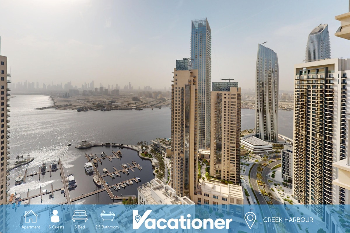 34층에 위치한 이 3베드룸 아파트는 아래의 크리크의 멋진 전망을 자랑합니다. 발코니에 발을 들이는 순간부터 세상의 꼭대기에 있는 듯한 느낌을 받으실 거예요. 활기찬 크릭 하버 커뮤니티에 위치해 있어, 상징적인 두바이 스카이라인과 주변의 탁 트인 전망을 자랑하는 경치 좋은 하버 뷰 데크를 즐길 수 있습니다. 두바이 몰과 부르즈 칼리파와 같은 주요 관광지에서 몇 분 거리에 있는 이 숙소는 내 집처럼 편안한 완벽한 숙소입니다.