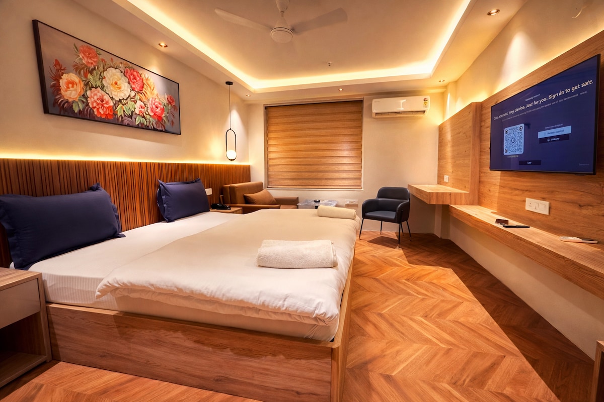 지하철역 근처 그레이터 노이다에서 모든 현대적인 편의 시설을 갖춘 고급스러운 스튜디오 아파트입니다. 그레이터 노이다에 위치한 고급스럽고 넓은 커플 친화적인 스튜디오로 엑스포 마트 근처에 있습니다. 마음에 드실 만한 점: ✔ 독특한 인테리어 – 매혹적인 인테리어를 즐기세요. ✔ 모던한 편안함 – 편안한 침대, 아늑한 좌석, 세련된 인테리어가 돋보이는 아름답게 꾸며진 공간. 시설이 ✔ 완비된 주방 – 좋아하는 식사를 간편하게 요리하세요. ✔ 빠른 와이파이 및 스마트 TV – 연결 상태를 유지하고 즐거운 시간을 보내세요.