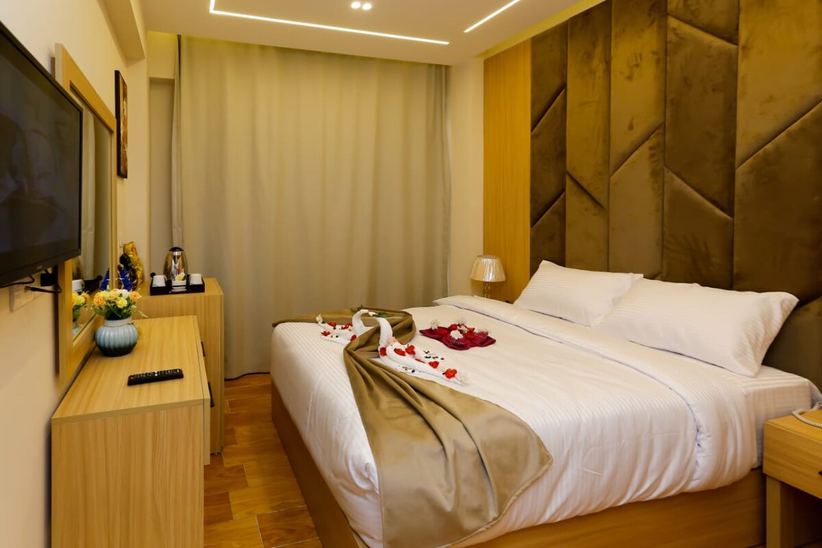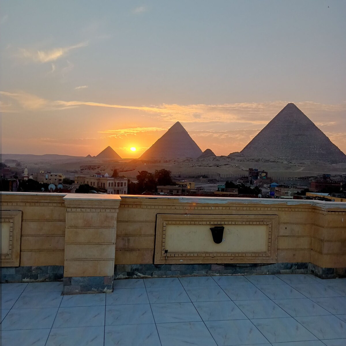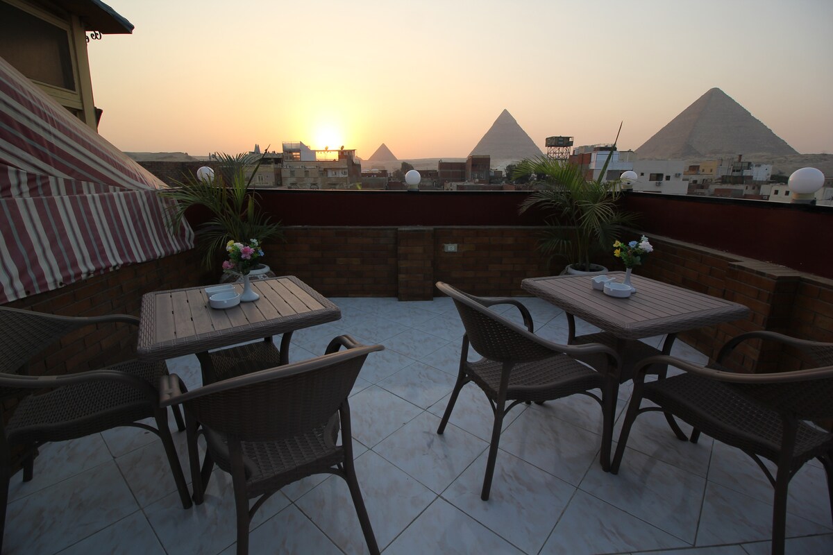 클레오파트라 타워 피라미드 전망 "은 현대적인 객실에서 편안하게 지내면서 고대 이집트의 경이로움을 사로잡는 기자 피라미드의 장엄한 전망을 제공합니다. 저희 직원은 저희 가족이며 24시간 서비스를 제공합니다. 클레오파트라 타워 피라미드 전망은 피라미드의 신성한 전망을 즐기면서 갓 조리한 아침 식사, 주스, 스낵바, 따뜻한 식사를 즐길 수 있는 넓은 테라스 공간을 갖추고 있습니다.