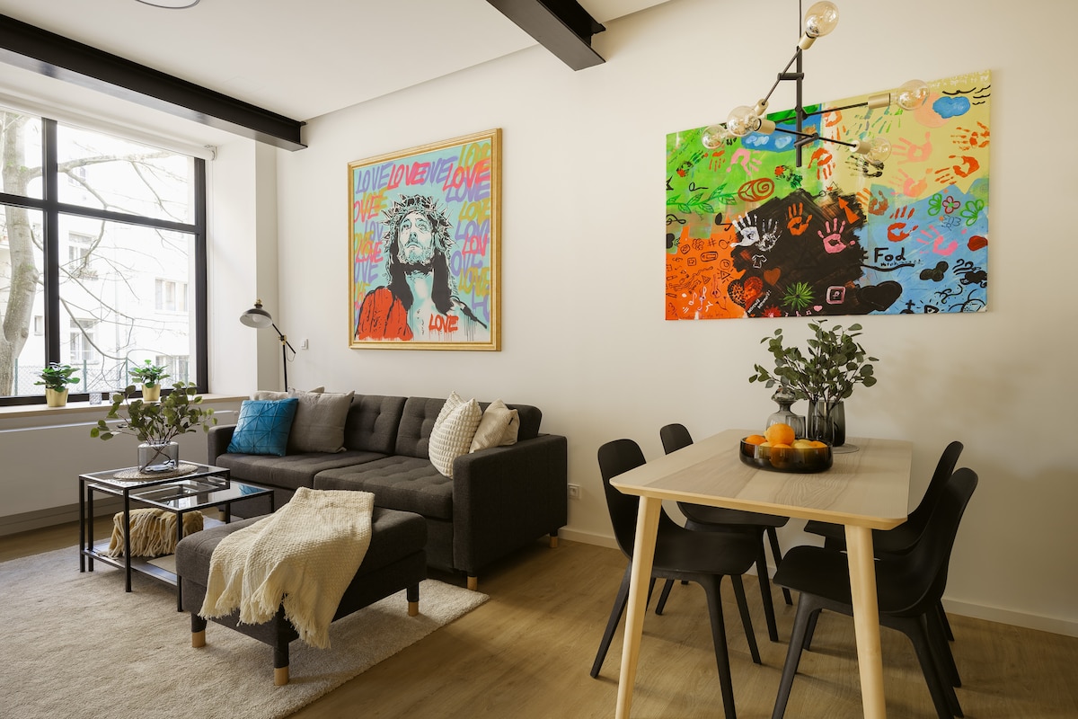 프라하 1의 아늑한 아파트, 웬체슬라스와 리퍼블릭 스퀘어에서 불과 몇 분 거리에 있습니다. 시설이 완비된 주방, 편안한 거실 공간, 스마트 TV가 있는 킹사이즈 침실이 있습니다. 현대적인 욕실 시설. 프라하의 역사적인 도심을 둘러보기에 완벽한 거점. 프라하 1 – 뉴타운에 위치하고 있으며 모든 것이 도보 거리 내에 있습니다. 이 지역은 활기차며 카페, 레스토랑, 상점이 가득합니다. 지하철, 트램, 버스, 기차 등 모든 대중교통이 도보로 2분 거리에 있어 도시를 쉽게 둘러볼 수 있습니다.