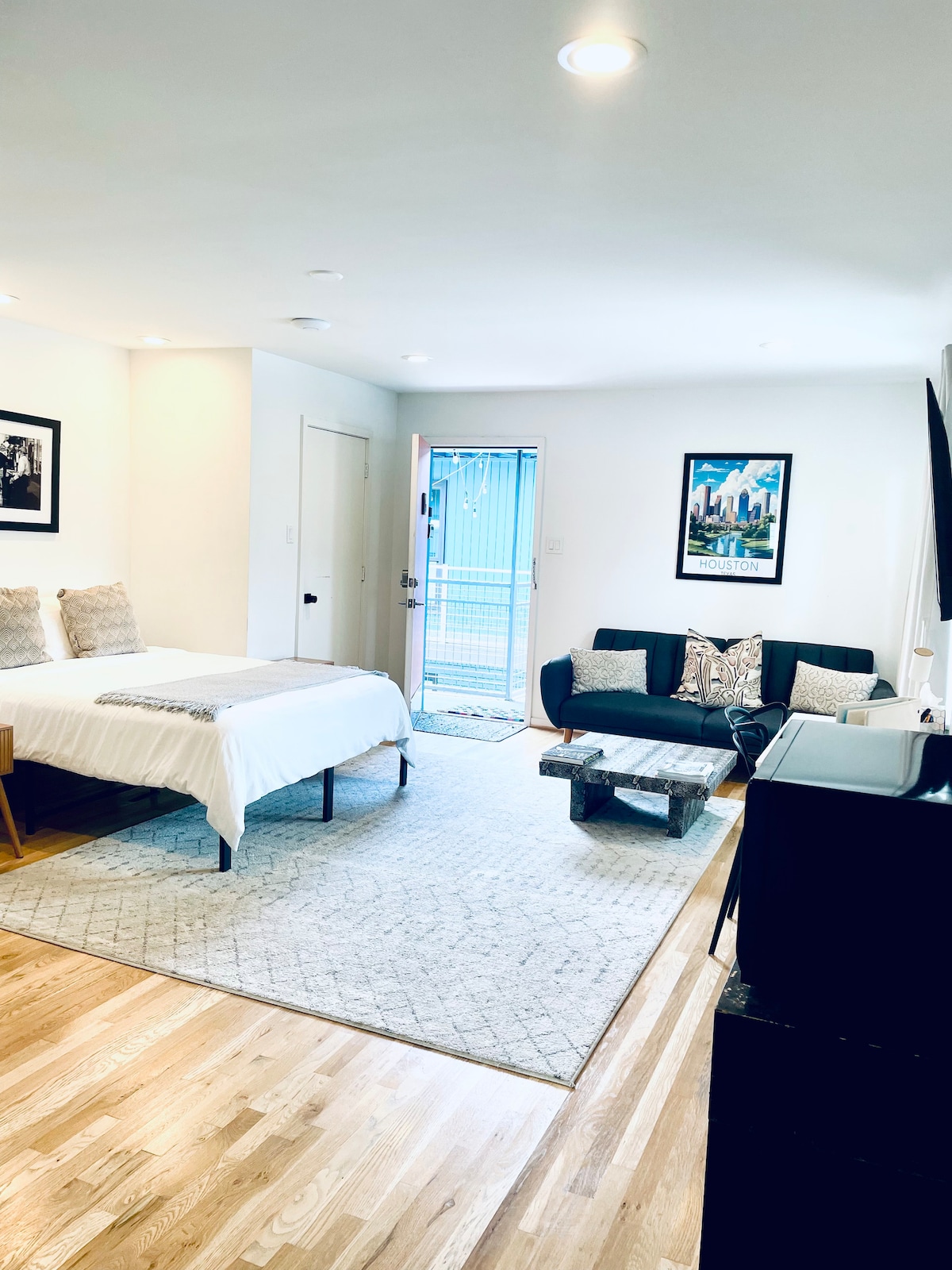 더 러스틱(#3): 새로 리모델링한 단지에 위치한 넓고 세련되고 완벽하게 디자인된 스튜디오로, 7개의 독특하고 최첨단 아파트로 구성되어 있으며 모든 것이 새것입니다. 더 러스틱은 완비된 주방과 별도의 거실 및 수면 공간을 갖춘 2개의 대형 앵커 스튜디오 중 하나입니다. 푹신한 킹사이즈 매트리스와 침구, 집처럼 아늑하고 편안한 인테리어, 충분한 조명, 스마트 기술, 최신형 가전 제품. 휴스턴 최고의 레스토랑과 나이트라이프에서 몇 걸음 거리에 있는 놀라운 중심지에 위치한 동네...