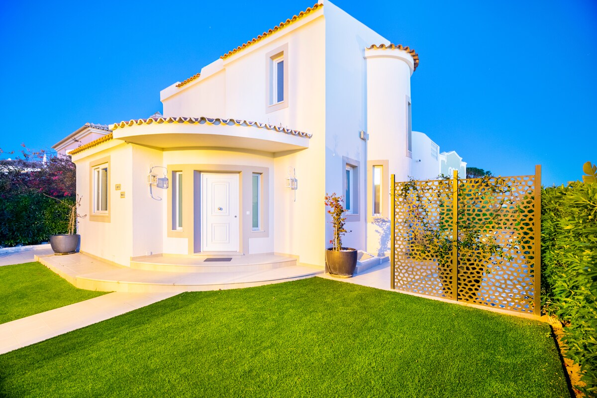 전용 수영장이 있는 햇살 가득한 빌라모우라 골프 저택