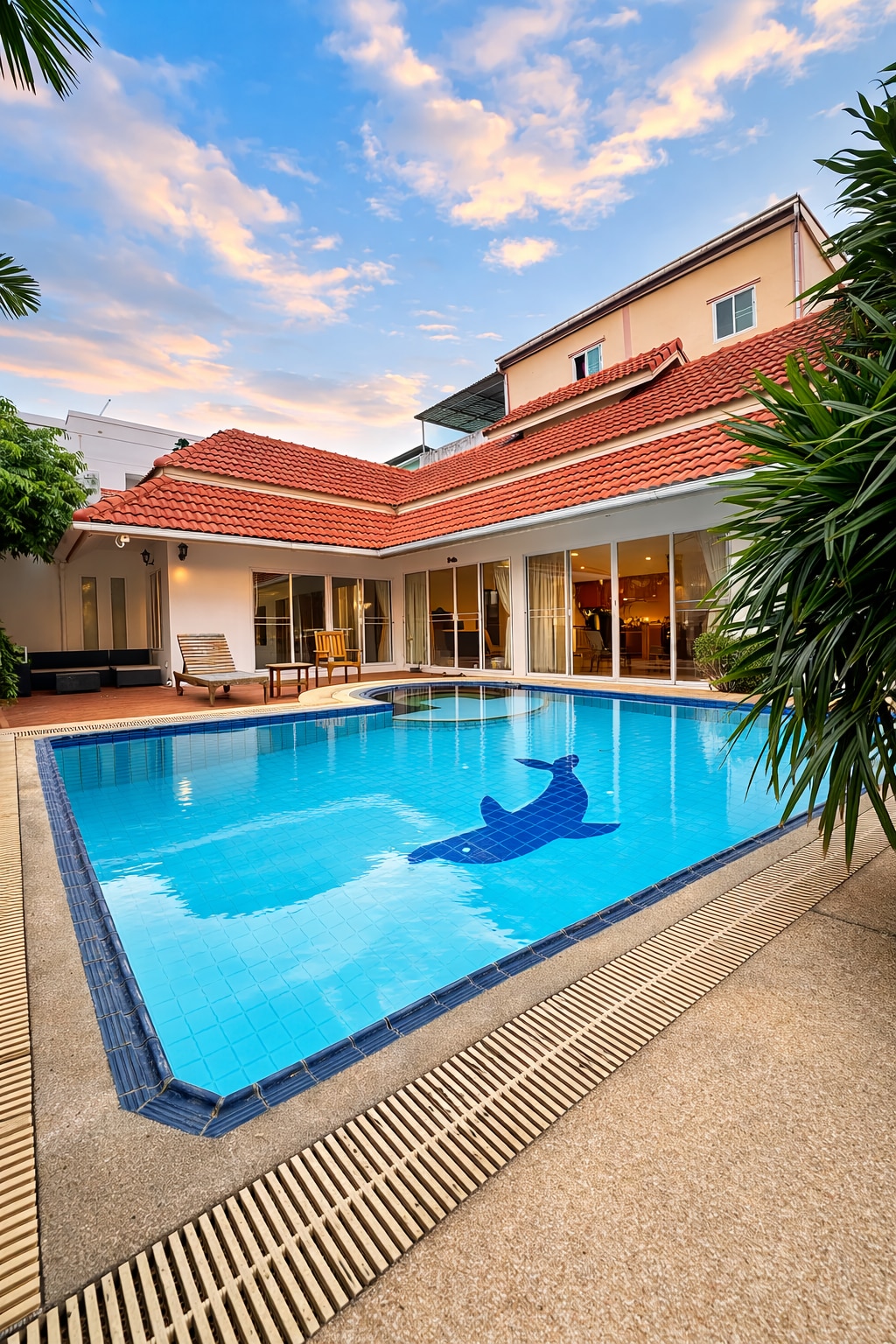 Welcome to Villa Tierra Pattaya, a stunning modern retreat where contemporary design meets the tropics. Curated for comfort, elevated by style, this sophisticated getaway offers a perfect balance of high-end luxury and peaceful seclusion. Relax by your private pool, enjoy alfresco dining, or unwind in sun-drenched living areas. Tucked away in a quiet Naklua neighborhood, you are just a 5-minute walk from the serene Wongamat Beach and a 10-minute drive to Terminal 21.