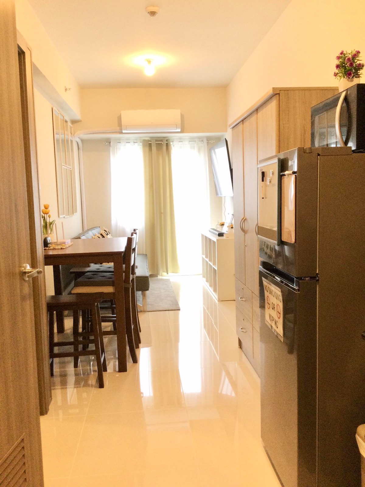 ๊ณตํญ์์ ๋ถ๊ณผ ๋ช ํฌ๋ก๋ฏธํฐ ๊ฑฐ๋ฆฌ์ ์๋ ํ๋์ ์ด๊ณ ๋์ 1BR, ๋ฐ์ฝ๋ ๋ฐ ์์์ฅ์ด ์์ผ๋ฉฐ, ๋ง๋๋ผ ๋ฒ ์ด ์ง์ญ์ ์๋ง์ ๊ด๊ด์ง์์ ๋๋ณด๋ก ์ด๋ํ ์ ์๋ ๊ฑฐ๋ฆฌ์ ์์ต๋๋ค. ๊ฑฐ์ค๊ณผ ์นจ์ค ๋ชจ๋ ์์ค์ด ์ ๊ฐ์ถฐ์ง ์ฃผ๋ฐฉ, ํ์ด์ด ๋ด๋ฆฌ์ฌ๋ ๊ฑฐ์ค, ํธ์ํ ์นจ๋, ์์ดํ์ด, ๋ทํ๋ฆญ์ค, ์์ด์ปจ, TV. ์ปคํ, ์๊ท๋ชจ ๊ฐ์กฑ ๋๋ ์ถ์ฅ์๋ฅผ ์ํ ์๋ฒฝํ ์์์ ๋๋ค. ์ฌ์ฐ๋ ๋ฐ ์ด๋ฆฐ์ด ๋์ด ๊ณต๊ฐ - ๋ฌด๋ฃ๋ก ์ด์ฉํ์ค ์ ์์ต๋๋ค. ์์์ฅ - ์ต๋ 3๋ช ๊น์ง ๋ฌด๋ฃ, ์ถ๊ฐ ์ธ์๋น P200.