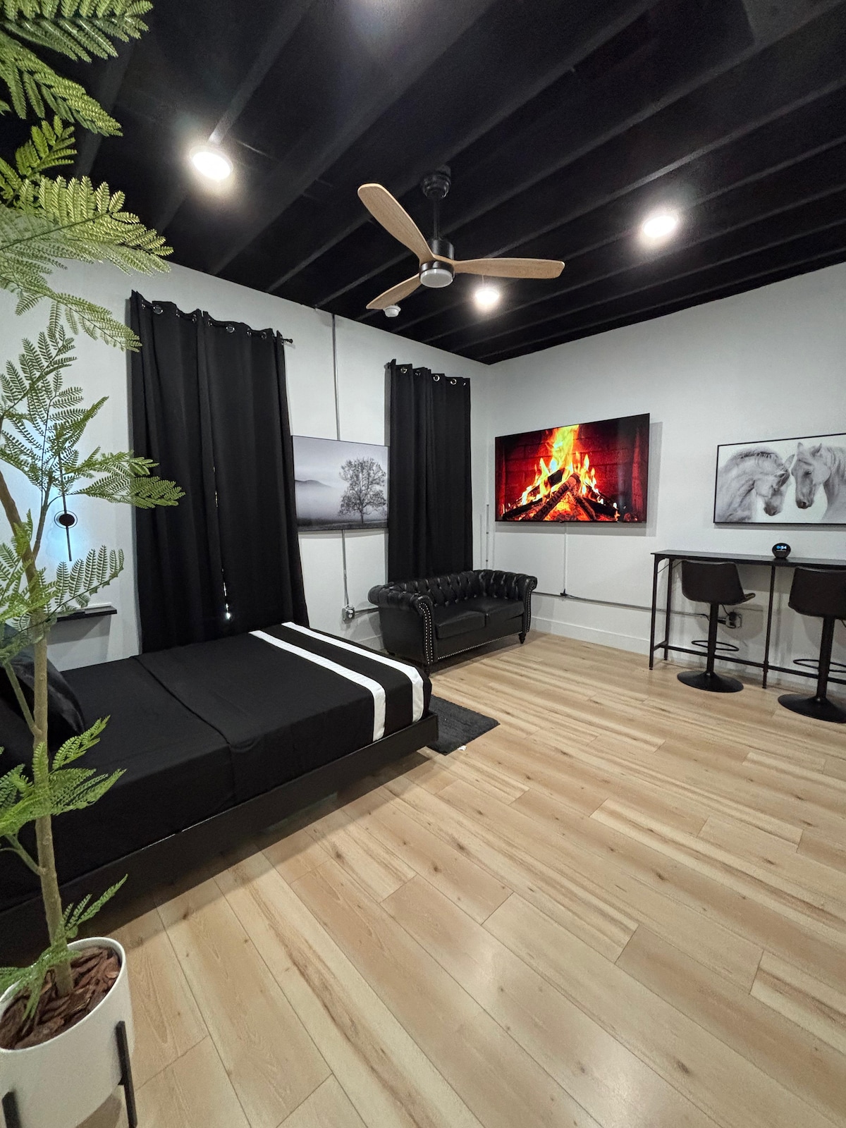 Enjoy a delightful stylish boutique apartment right in the center of The Villages. Perfect for a quick getaway. Relax and unwind in the cozy sitting room with large TV, dining/work table. The kitchenette includes a microwave, air fryer, coffee maker and refrigerator. Relax on the front patio and enjoy the beautiful colors of the sunset. Whether you are here to experience the amazing amenities the villages has to offer or simply taking a break this peaceful oasis is the perfect spot. .