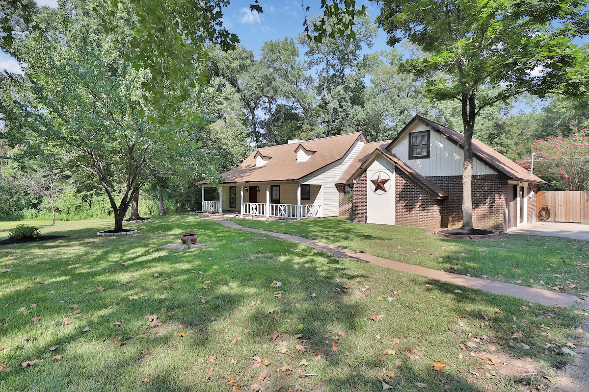 PLEASE READ EVERYTHING! Stay here and you'll never want to leave! This 6-acre oasis within the city of Conroe features a winding road leading back to the beautiful ranch-style 5-bedroom, 3-bath home, and a private pool in the fenced-in backyard. Whether you're here for a private getaway or a large family gathering, this place has everything you need: Wi-Fi, large-screen TVs, coffee makers, pool accessories, and more. But most of all, the quiet and peaceful surroundings will soothe your soul...