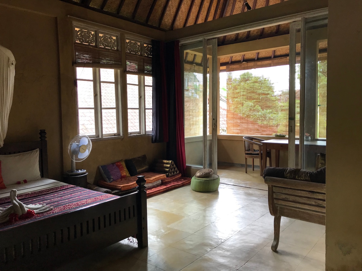 우붓의 독특하고 아늑한 침실 1개 가든 아파트