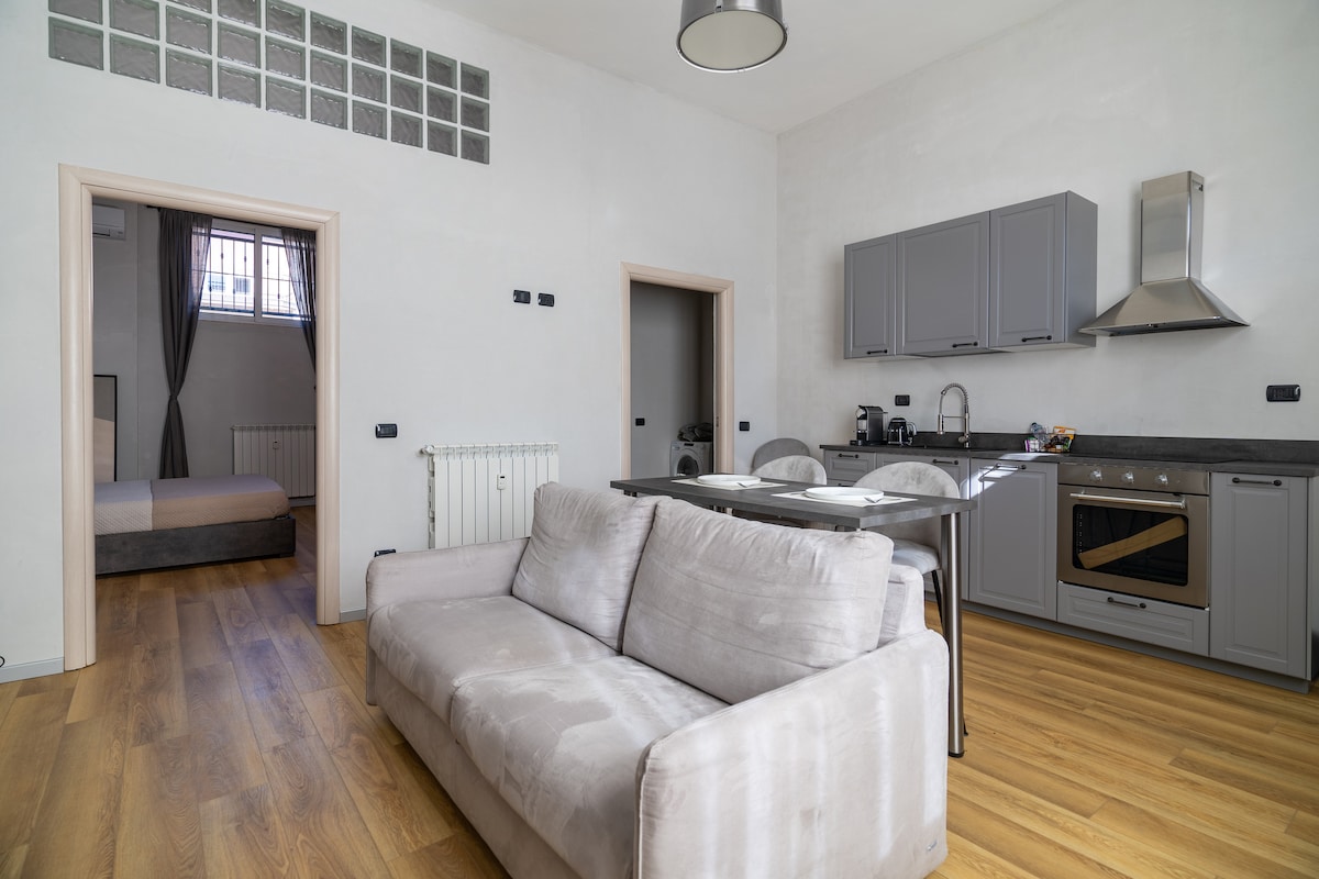 A stylish, bright loft ideal for travelling people, professionals/remote workers and leisure guests alike. 60 sqm with exposed beams and private terrace. Very fast Wi-Fi 1 Gbps fiber, large table desk, comfortable workspace, AC and modern comforts. Situated in a trendy, cosmopolitan area, full of Art Nouveau architecture, independent cafés, design bars, and international restaurants. Just a few minutes walk from Corso Buenos Aires, one of the longest shopping streets in Europe.