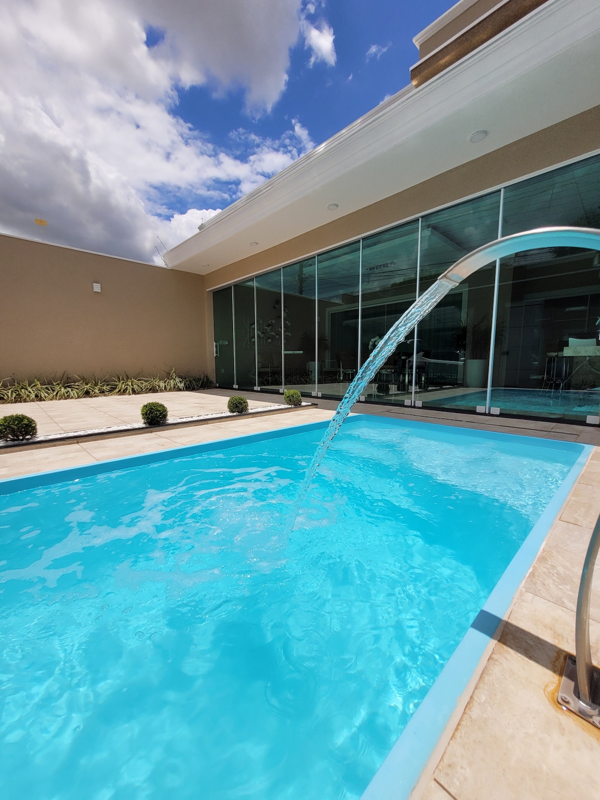 🏡 Casa de Temporada para 16 pessoas com Área de Lazer e Piscina AQUECIDA💦. Amplo espaço com 1.600m², recém-construído e atendendo a famílias. Somos o Recanto Quinta das Palmeiras Espaço de Lazer contendo: -3 suítes com Ar-Condicionado 🛏️ -Piscina Aquecida♨️ -Churrasqueira 🍖 -Fogão cooktop🍳 -Geladeira🧊 -Cervejeira🍻 -Tv Smart 75 📺 -Wi-fi 📶 -Bebedouro de água💧 -Cafeteira Expressa DolceGusto☕ -5 banheiros🚿 -Garagem 6 carros LOCALIZAÇÃO Perto dos Parques Aquáticos, Mercados e Restauran