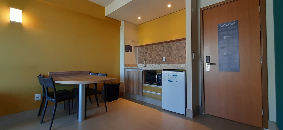 ⚠️ CONSULTE ANTES DE RESERVAR 🍽️ Não inclui refeições. ✨ Apto ao lado do Thermas dos Laranjais! 🏠 Sala com sofá-cama, cozinha americana (sem utensílios), quarto com cama de casal, cama de solteiro + auxiliar e mais 1 sofá-cama. 🚿 Banheiro c/ ducha a gás, secador e toalhas. 🌐 Wi-Fi, ❄️ ar-cond., 🚗 vaga coberta de acordo com a disponibilidade . Acomoda até 6 hóspedes (inclui crianças e bebês).