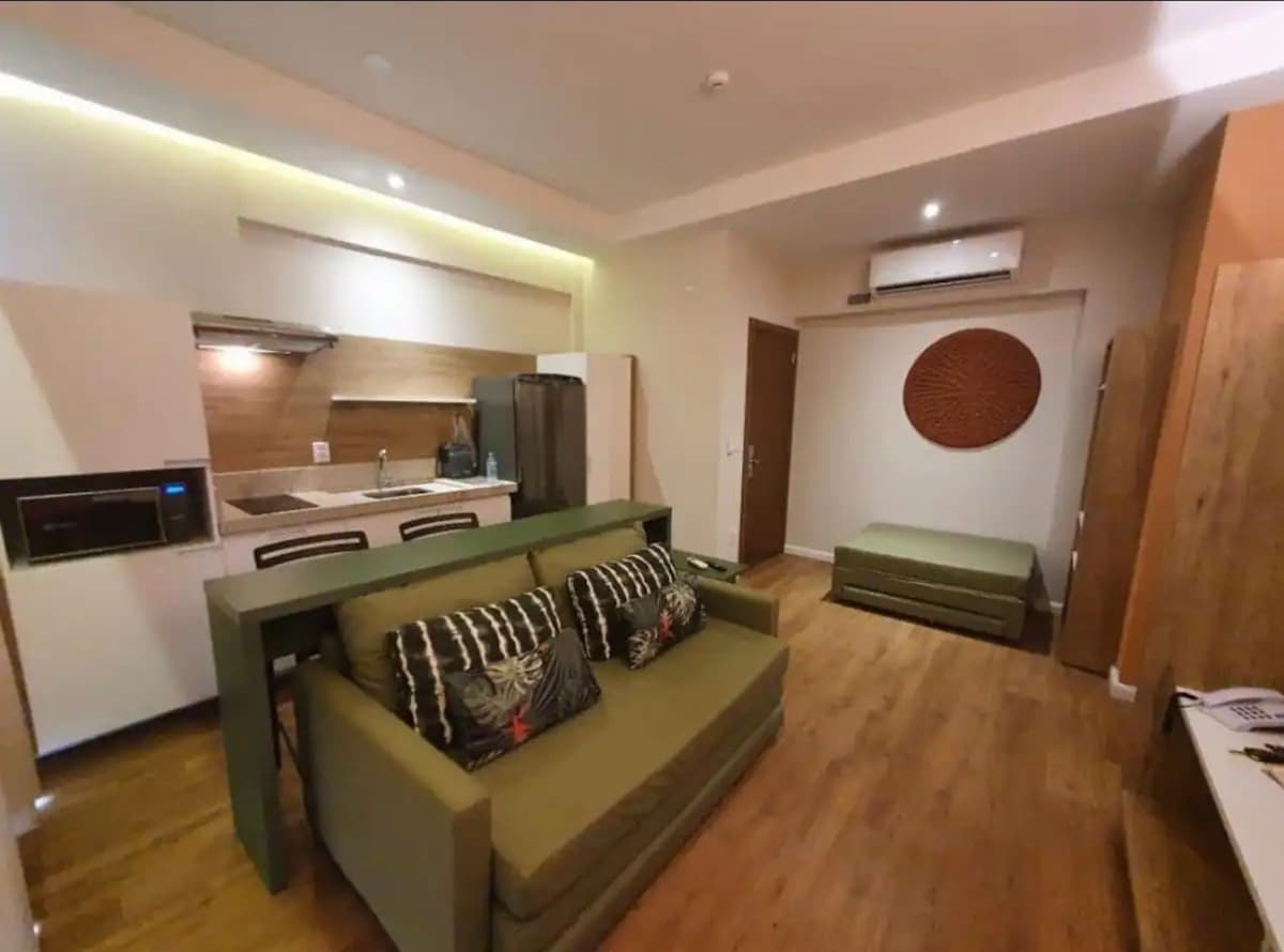 아파트는 테르마스 도스 라랑자이스에서 7분, 시내에서 4분, 드림랜드 왁스 박물관에서 1분, 레스토랑, 피자 전문점, 아이스크림 가게, 약국, 시장 등이 있는 주요 거리에서 1분 이내 거리에 있습니다. 아파트에는 와이파이와 넷플릭스, 디즈니+, 프라임과 같은 주요 스트리밍 도구가 있는 케이블 TV가 있습니다. 두 방 모두에 에어컨이 설치되어 있고 거실에는 천장형 선풍기가 있습니다.