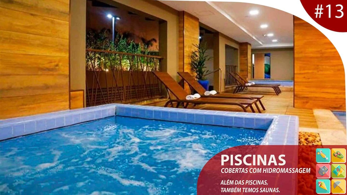 가족 단위 여행객에게 이상적인 이 독특하고 이상적인 장소에서 잊을 수 없는 순간을 즐겨보세요. 워터파크 이용료 R $ 99,00/일 (아파트당). - 여기에서만 찾을 수 있습니다. 핫비치 스위트 훌륭한 위치 최대인원 6인 침실 1개: 더블 침대 1개 및 소파 베드 2개 화장실 1개 에어컨 발코니 그릴 케이블 TV가 구비된 TV 2개 - 놀이터 -게임 룸 -게임 룸 피트니스 룸 1대 주차 가능 핫비치 공원 별도의 출입구, 대기열 없음