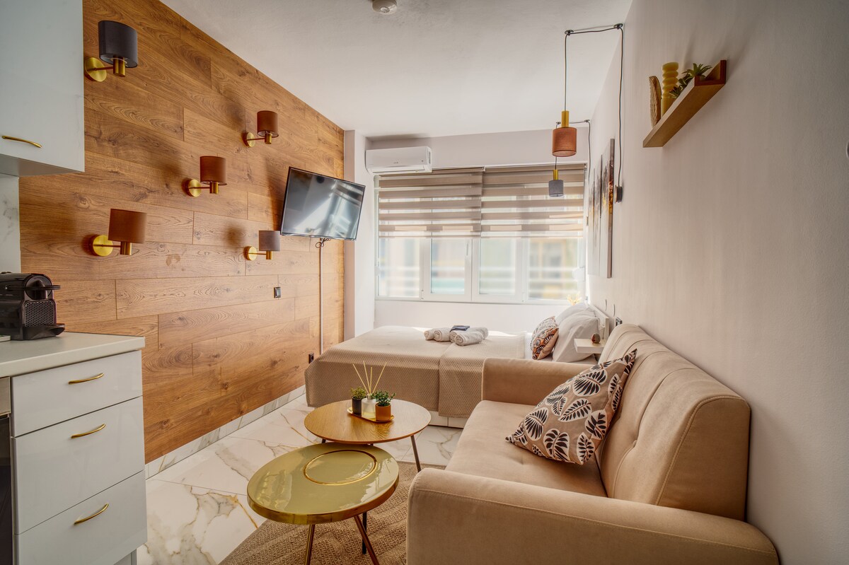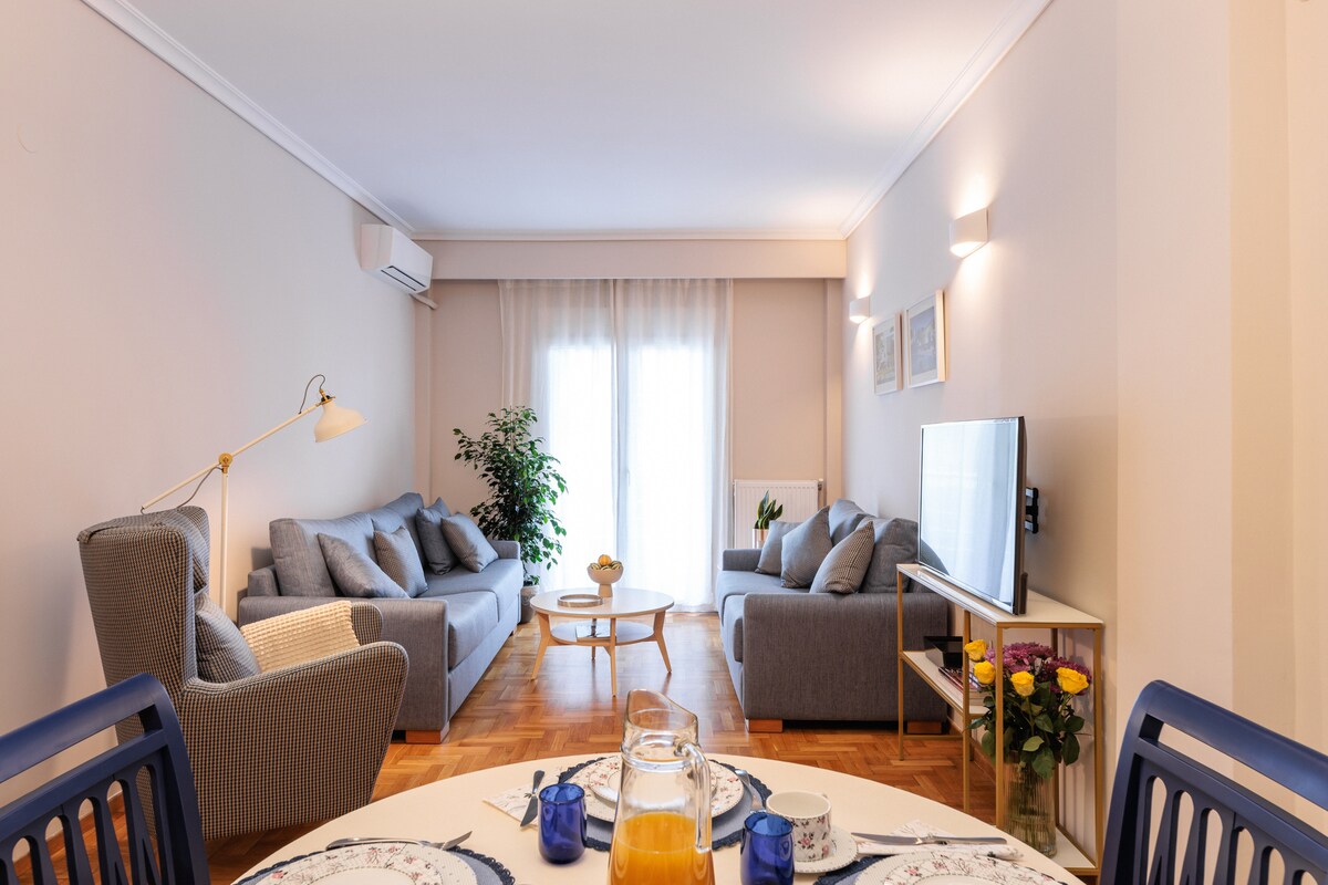 Welcome to your modern, fully renovated city retreat in Mpotsari, one of Thessalonikiโs most peaceful and pleasant neighborhoods. Just a 5-minute walk to the famous Promenade, located between two metro stations, and only 15 minutes from the airport, this bright 44 mยฒ apartment offers the perfect balance of comfort and location. Whether you're visiting for a romantic getaway, a city break, a family trip, or a longer stay, this home is designed to make you feel at home from the very first minute.