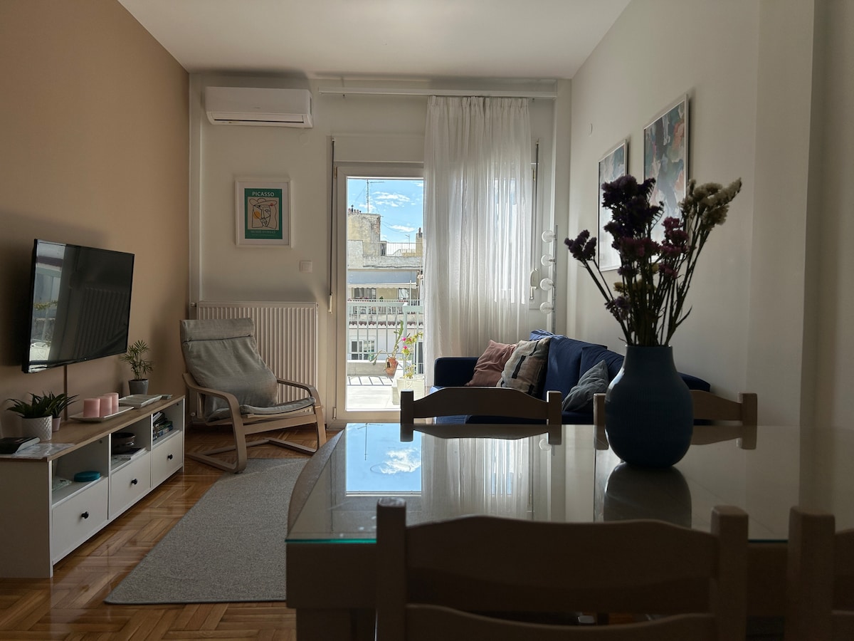 테살로니키 도심에서 단 10분 거리에 있는 세련되고 개조된 스튜디오 섬의 분위기를 느낄 수 있는 스마트하고 전문가의 디자인, 도시의 진정한 오아시스. 완비된 주방, 네스프레소 머신, 가스 난방, 최대 300MBps의 초고속 광섬유 인터넷, 넷플릭스 계정. 출장객 및 관광객에게 이상적. 환영합니다. 편안하게 머물다 가시길 바랍니다!