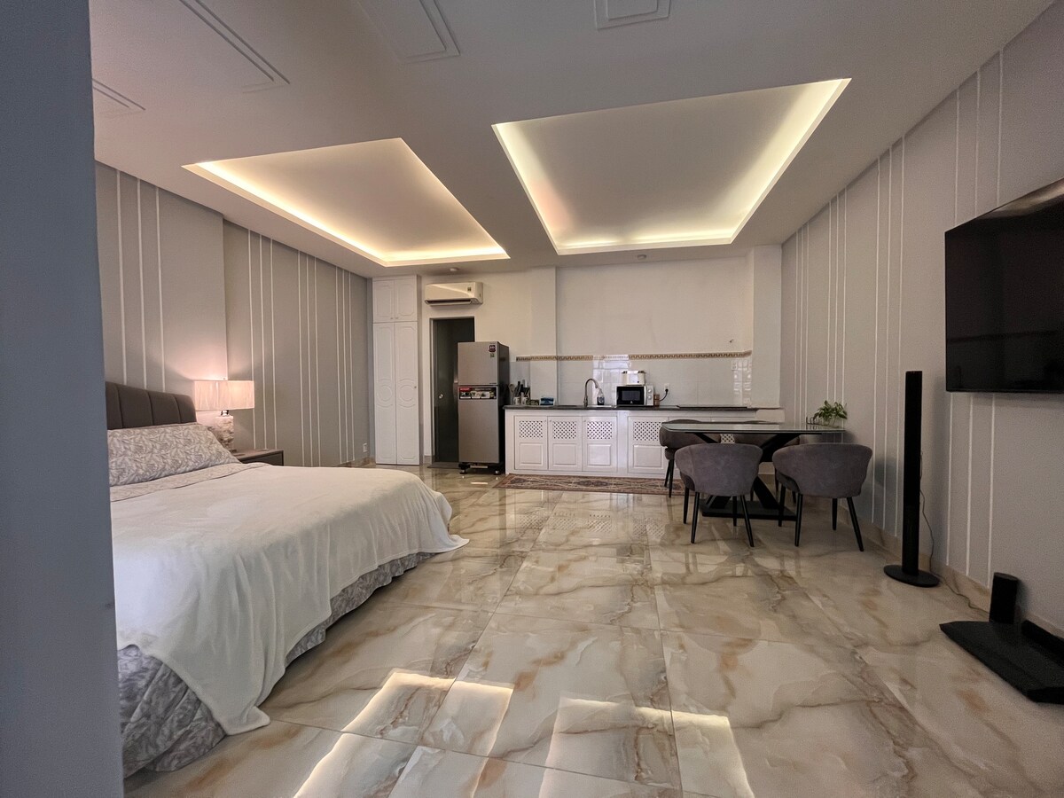 Beautifully designed Studio Apartment, convenient location, and direct elevator. Located right at the center of Thu Dau Mot city, 5' drive or 10' walk to the most commercial towers in town (Becamex Binh Duong), close to a number of dining, drinking and relaxing options, yet still quiet for a comfortable stay. ✯ Proper in-person check-in / checkout ✯ 24/7 online and offline support ✯ We have multiple units in house so feel free to ask if you need more occupancy