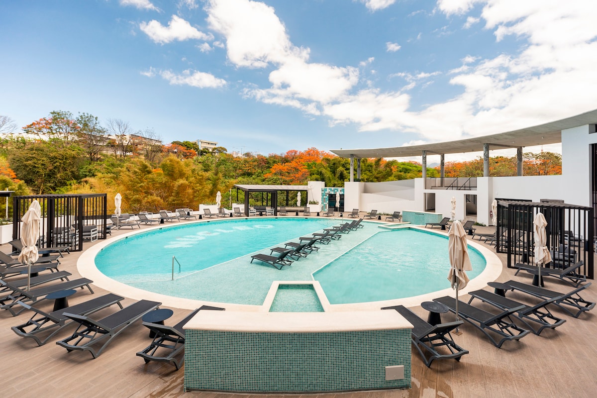 Embrace comfort in this centrally-located 1-bedroom condo, just 15 minutes from San José. From the 12th floor, enjoy stunning sunrise views over the city and mountains. The interior boasts high-speed WiFi, state-of-the-art kitchen appliances, elegant decor, and a plush bed for ultimate relaxation. The building offers an impressive array of amenities, including a semi-Olympic pool, saunas, gym, co-working space, fire pits, game room, and rooftop terraces with panoramic urban views.