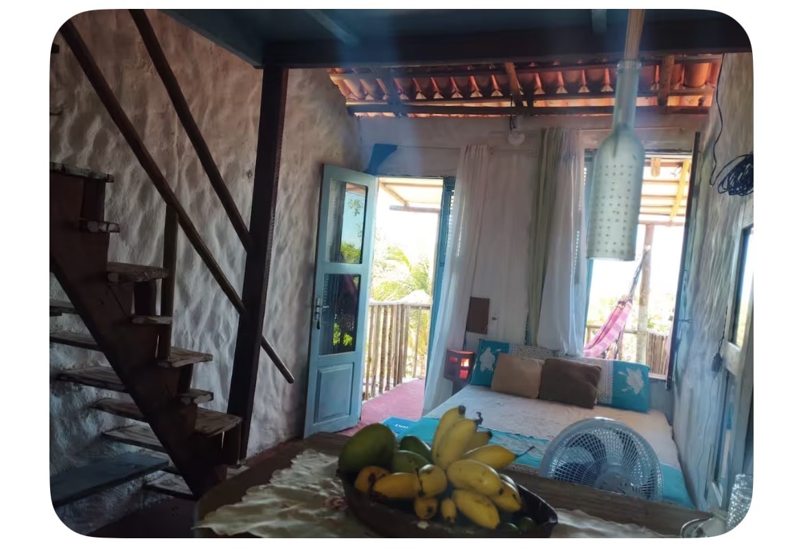 크고 넓은 스위트. 베란다에 그물. 환기가 잘 되고 특별한 장소입니다. 더블 침대 1개 + 싱글 침대 2개(이층 침대). 이 스위트는 별관에 있으며 다른 스위트 4개가 있습니다. 완비된 공용 주방/식기 보관실이 있습니다. 해변에서 100미터 이내 거리에 있습니다. 방에 들어가려면 계단을 올라가야 합니다. 이카푸이/세의 페로바 해변은 매우 독창적인 바닷가재 어부 마을입니다. 휴식을 취하고 자연을 즐기기에 이상적입니다. 열정적이고 천국 같은 곳. 계단으로 접근. 최고의 전망.
