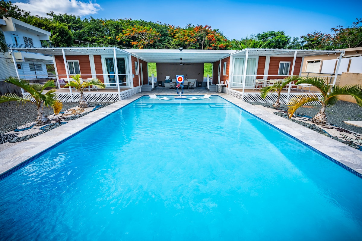 멋진 산 전망, 넓은 파티오, 야외 환경을 갖춘 전용 언덕입니다. 아름다운 테라스와 전망으로 둘러싸인 독특한 주방과 바에서 식사와 음료를 즐기며 가족 모임을 즐기세요. 독특하고 작은 수영장과 멋진 분위기를 연출할 수 있어 많은 사진의 추억을 남기기에 안성맞춤입니다. 숙소 내부에서 워킹 카디오를 사용하기에 좋습니다. 진정으로 푸에르토리코를 느낄 수 있는 여유로운 경험을 준비하세요.