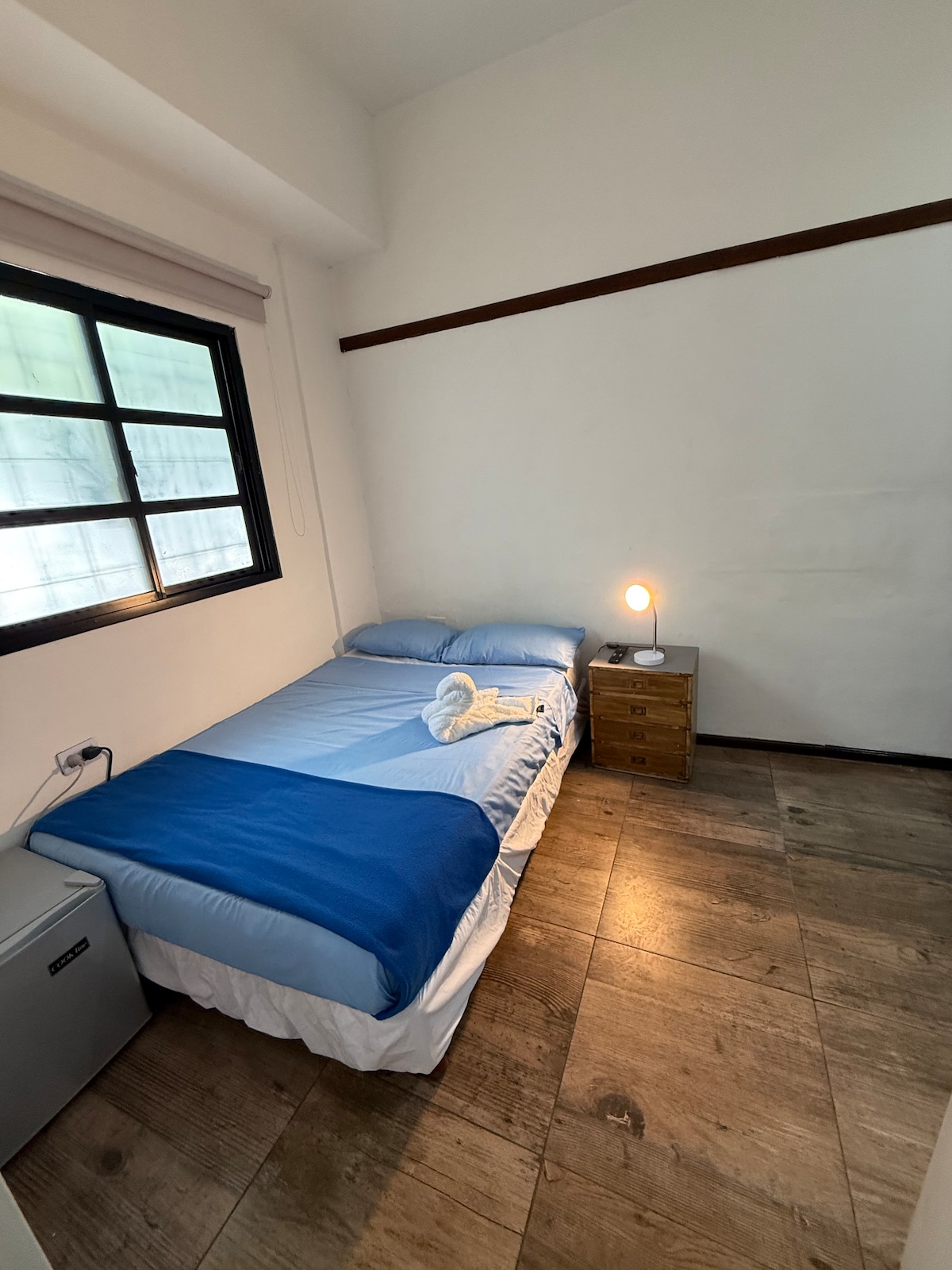 Suite de 40 mts con cocina completamente equipada. Posee un ΓΊnico ambiente con 1 cama matrimonial o 2 camas individuales + un sofΓ‘ para 2 personas.