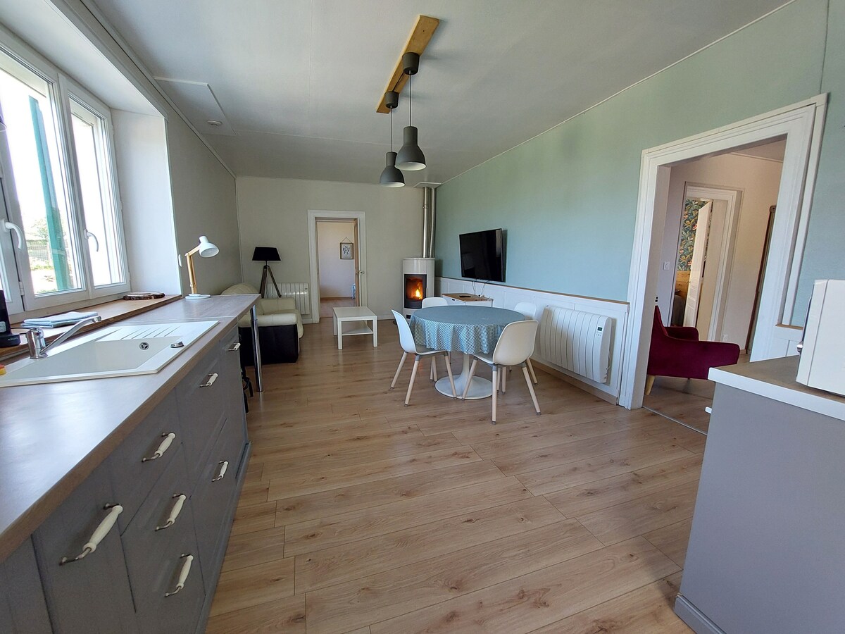 올리앙과 피티비에르 사이의 평화로운 안식처로 올리앙 숲의 22헥타르의 넓은 공간에 있으며 저희 집과 인접해 있습니다. 전원주택(85㎡)은 노빌 오 부아에서 5km 떨어진 오래된 헛간에 있습니다. 완비(세탁기, 식기세척기, 전자레인지 등) 침실 3개(침대 3개 90cm, 침대 2개 140cm). 테라스, 전용 정원, 바비큐, 보트/페달 보트, 낚시, 대형 보호 놀이터, 푸스볼, 탁구, 악기(드럼, 기타, 신디사이저, 젬베) 유연한 시간