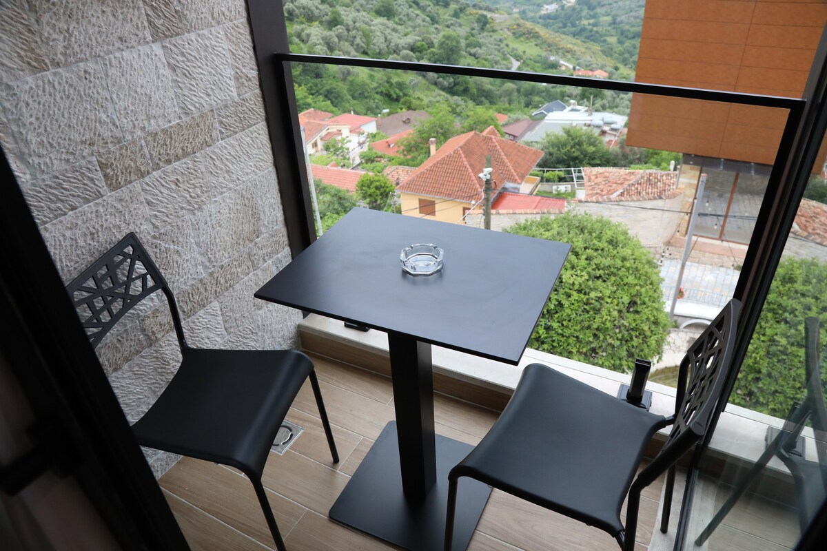Introducing our luxurious hotel room 201, located 2 min away from the old bazaar of Kruja and the city center. Situated on the 3rd floor, this modern oasis boasts a jacuzzi and breathtaking city views. Enjoy the area with an open wardrobe and a Smart TV with Netflix for your entertainment needs. You'll find yourself just minutes away from the historic Kruja Castle and surrounded by a plethora of dining options, cafes, shops, ATMs, bakeries, currency exchange services, pharmacies, souvenir shops.