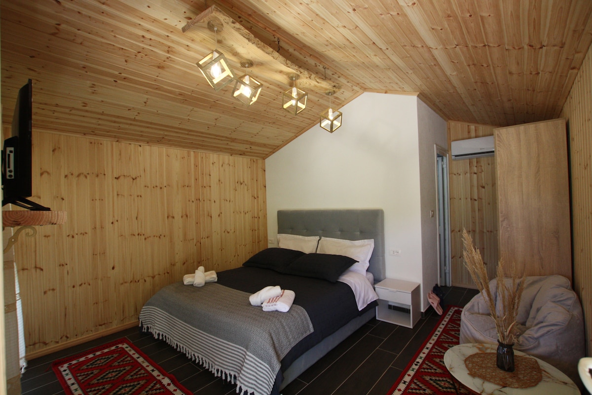 Shëngjergj의 고요한 주변 환경에 자리한 아늑한 목조 휴양지에 오신 것을 환영합니다! 이 매력적인 통나무집은 조용한 휴양지를 제공하며, 평화로운 휴가를 원하는 커플이나 나홀로 여행객에게 적합합니다. 소박하면서도 현대적인 가구, 고급스러운 킹사이즈 침대, 편안한 숙박에 필요한 모든 편의시설로 편안하게 휴식을 취하세요. 밖으로 나가 신선한 산의 공기를 마시며 이 지역의 아름다운 자연에 흠뻑 빠져보세요.
