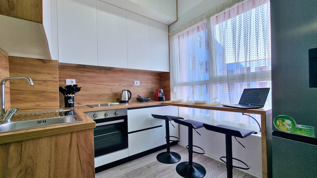 티라나 중심부의 고요한 휴양지에 오신 것을 환영합니다. 현대적인 편안함과 전통적인 매력이 조화를 이루는 세련된 콘도로 커플, 솔로 여행자 또는 출장자에게 적합합니다. 스칸데르베그 광장과 활기찬 블로쿠 지구에서 몇 걸음 거리에 있어 도시 최고의 카페, 바, 레스토랑, 나이트라이프를 즐길 수 있습니다. 내부에서는 바쁜 하루를 보낸 후 휴식을 취하기에 완벽한 우아하게 디자인된 매력적인 공간을 즐길 수 있습니다. 출장이든 여가이든 티라나에서 이상적인 숙소입니다.